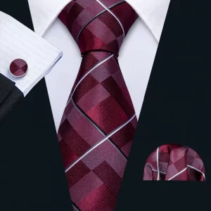 Men's Red Plaid Silk Tie & Hanky Set – Wedding & Party Fashion
