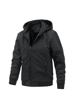 Men's Spring Fall Jacket with Detachable Hood Lightweight Casual Sports Coat