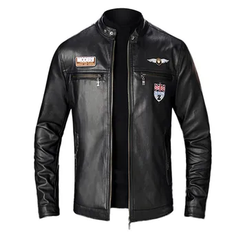 Leather Lop Bags Men'S Autumn Winter Slim Leather Jacket Fashion Custom Printed Motorcycle Coat Zipper