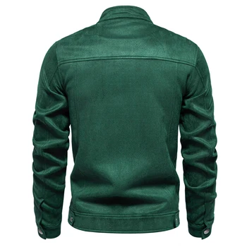 Men s Classic Suede Bomber Jacket with Stand Collar and Zipper Closure - Stylish Long Sleeve Coat for Fall Fit Outerwear