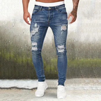 Men'S Denim Skinny Stretch Ripped Freyed Slim Fit Jeans