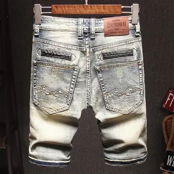 Designer Cowboy Luxury Clothing Punk Vintage Denim Knee-Length Shorts for Men
