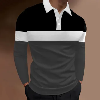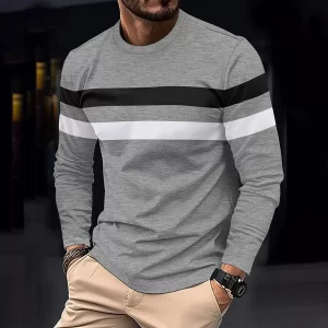 New T Shirt Men'S Autumn Winter Color Block Long Sleeve Tops Cotton
