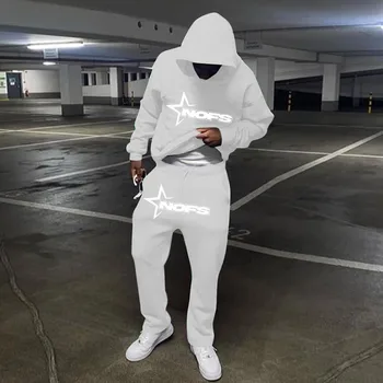 Letter Print Men's Tracksuit Autumn Oversize Warm Long Sleeve Hooded Drawstring Sweatshirt+Sport Pant