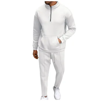 Men'S Fall Two-Piece Sets High Neck Half Zip Pocket Sportwears Solid Long Sleeve Hoodie Pant Autumn Casual Suit