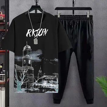 Mens Sets 2 Piece Outfits Fashion Tracksuits Casual Set Short Sleeve Shirt And Pants Set Two-Piece Outfit