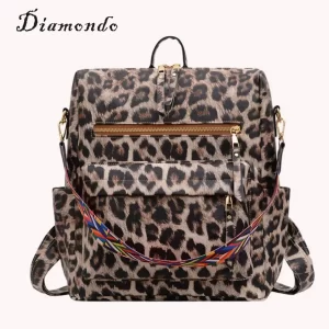 Retro Leopard Print Backpack – Handheld & Shoulder Travel Bag
