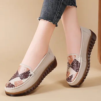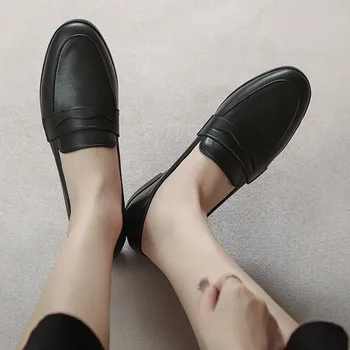 Women'S Comfortable Shallow Cut Leisure Single Leather Flat Casual Shoes