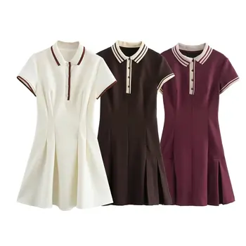Women Dresses Elegant Polo Collar Solid Short Sleeve