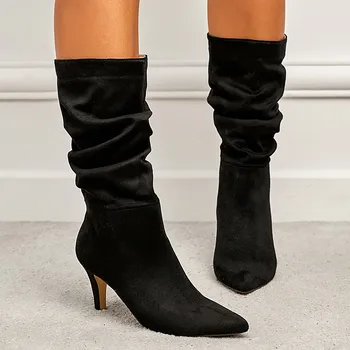 Women'S High Suede Mid Pointed Toe Over The Knee Wide Calf Boots