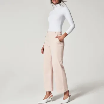 Women’S High Waist Casual Wide Leg Stretch Twill Cropped Long Trousers