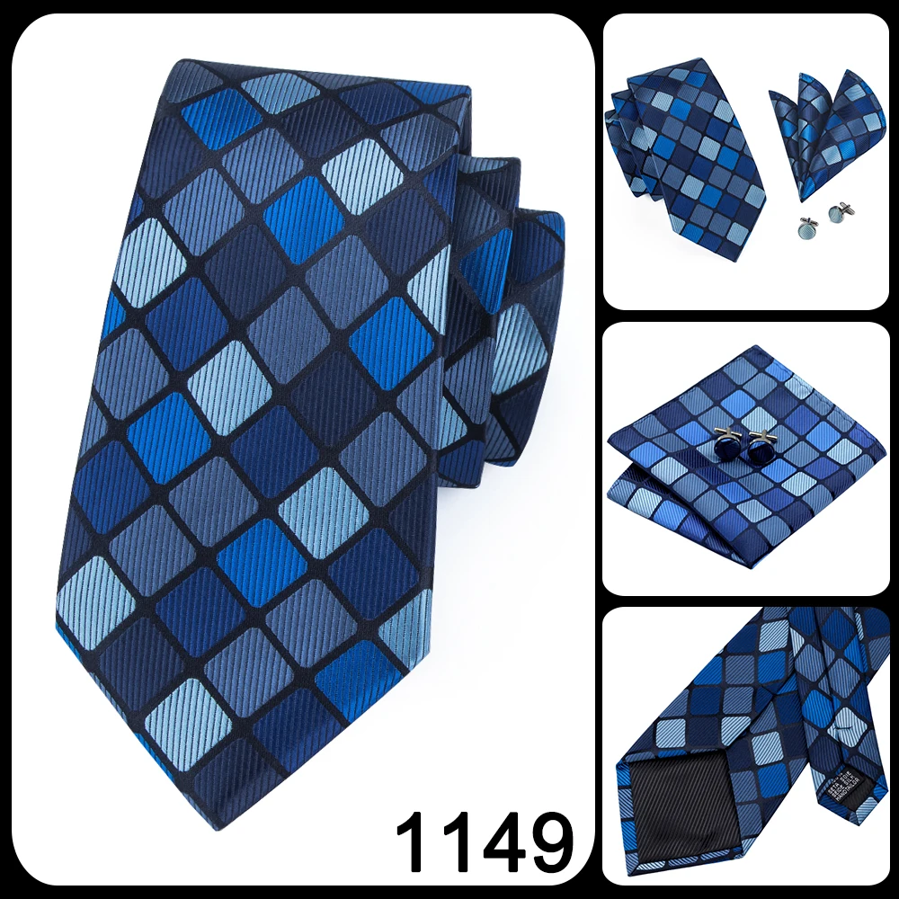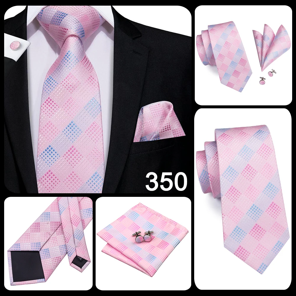 C-1198 Fashion Silk Jacquard Tie Light Blue Pink Plaid Tie Hanky Cufflinks Set Ties For Men Business Wedding Party