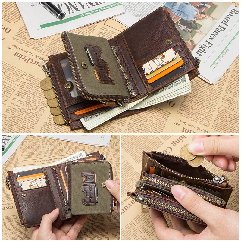 100% Leather RFID Wallet – Zipper Coin Purse & Card Holder