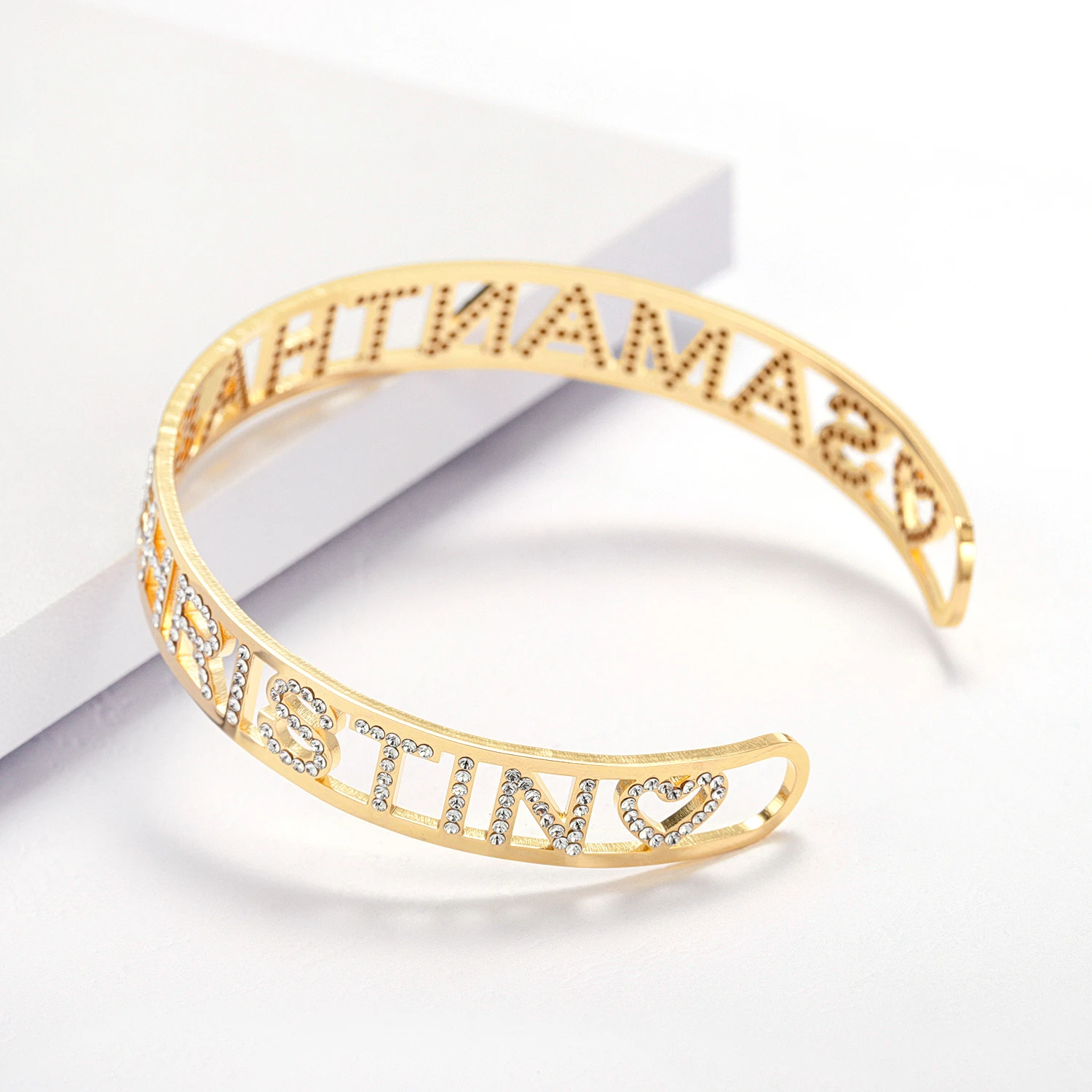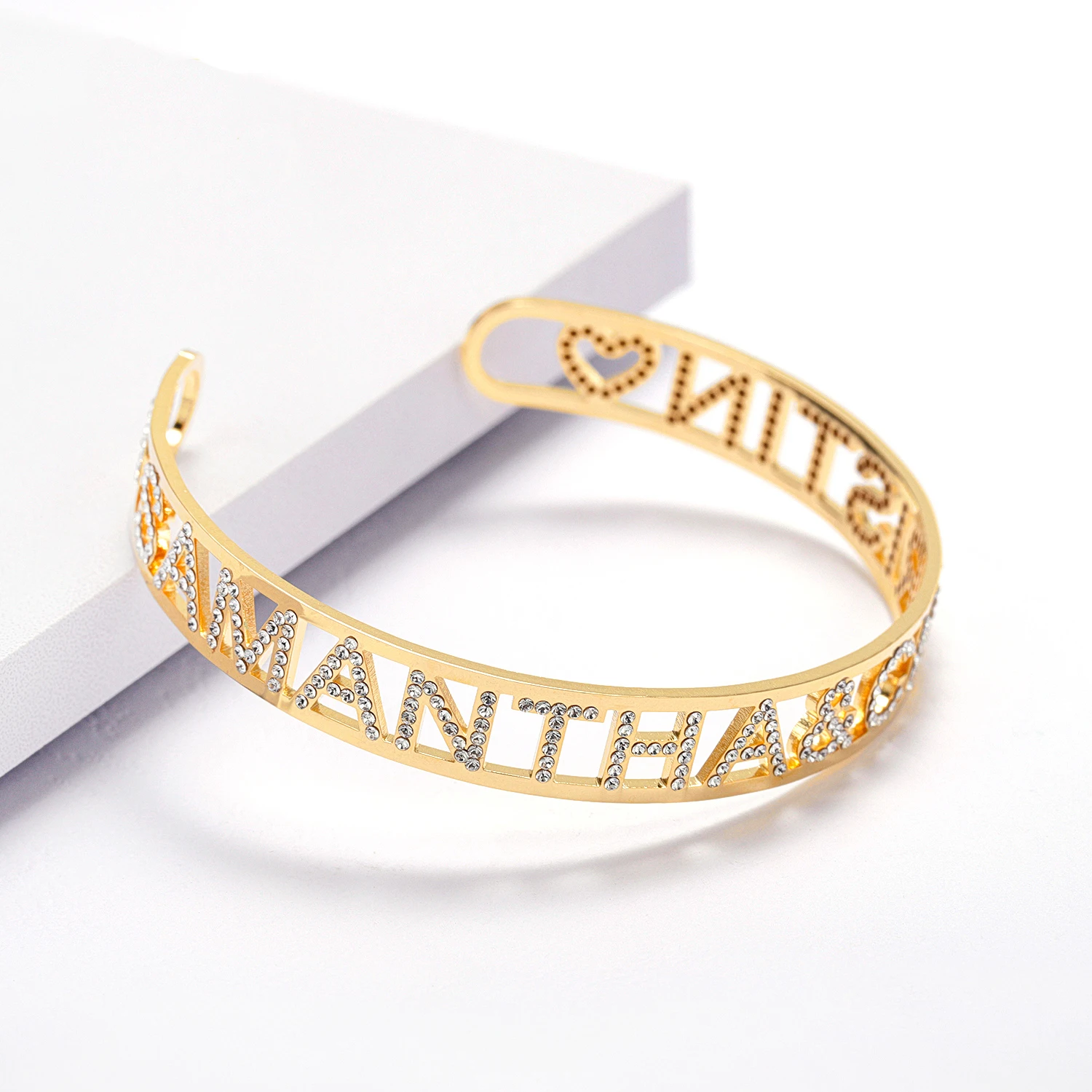 Discover this striking custom ice crystal name bracelet, designed for women who pursue individuality and quality. Made of high-quality stainless steel, the light and tough body of the bracelet is based on hollow letters, covered with a unique ice crystal texture coating, shining with a cool and charming light, like the frost in the early morning, pure and noble. The personalized diamond nameplate in the center of the bracelet is cleverly inlaid with tiny and dazzling diamonds. It is available for customization. You can engrave your desired name or special date on it, making each piece a precious jewel that carries unique emotions and stories. Whether it is a self-reward or a birthday gift for a loved one, this customized choice can accurately convey your heart and leave unforgettable memories. Considering the comfort and applicability of wearing, this bracelet is made of hypoallergenic material, suitable for all skin types, and is designed with an adjustable chain clasp to ensure that it fits wrists of different sizes, bringing an unparalleled wearing experience. Whether it is daily wear or special occasions, this bracelet can be easily integrated and become the finishing touch to enhance the overall look. Each customized ice crystal name bracelet comes with an exquisite gift box packaging, showing high-end and noble details. Whether it is kept for yourself or given as a gift, it is the perfect medium to express emotions. Choosing such a bracelet is choosing an eternal memory, letting it accompany you or your loved ones and record every shining moment.