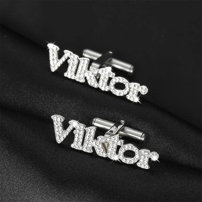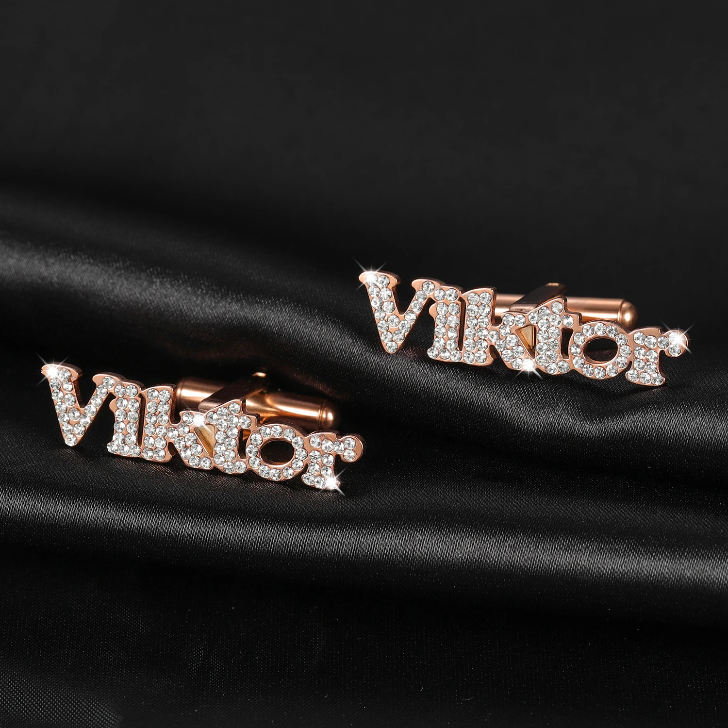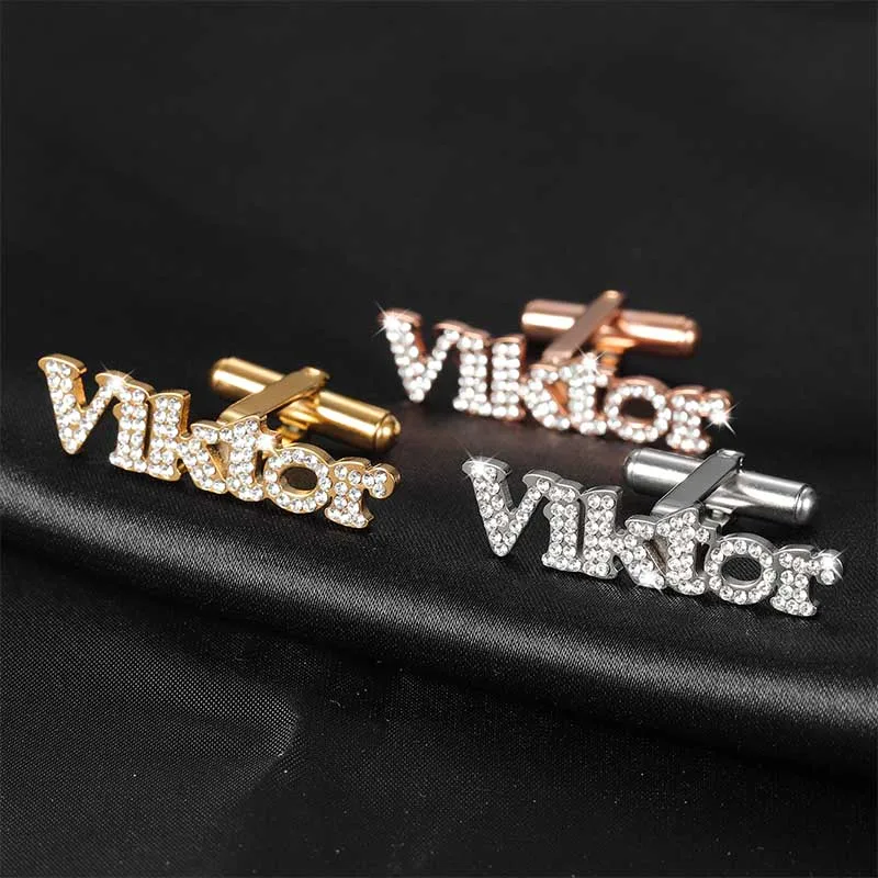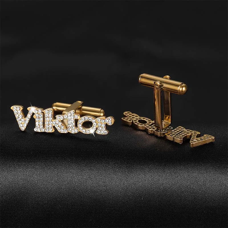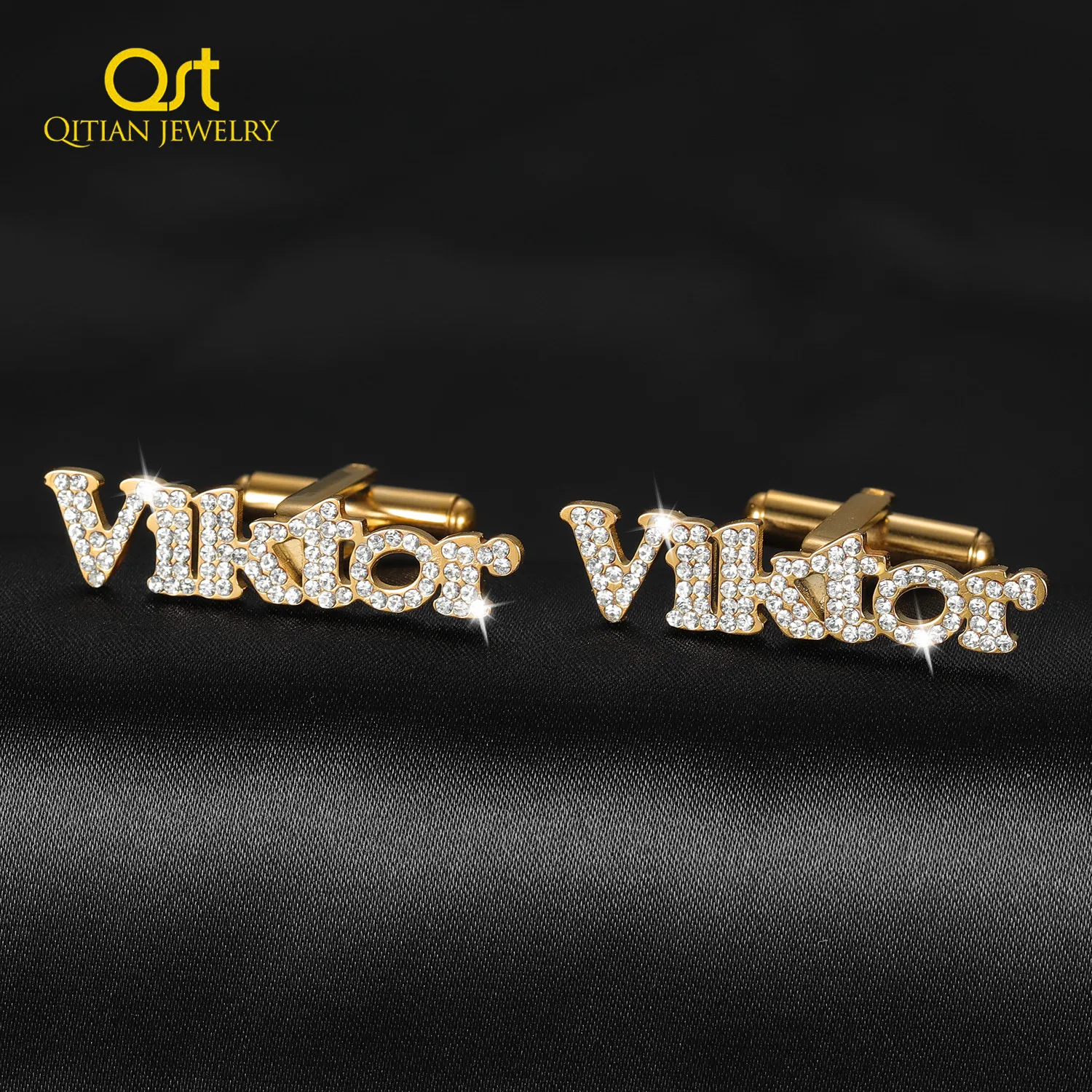 Custom Iced Out Cufflinks – Personalized Name or Logo Stainless Steel Men’s Jewelry
