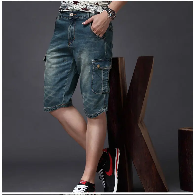 Be the first to review “Denim Jeans for Men Designer Knee Length Shorts Capri Loose Straight Leg Slim Casual Punk Workwear Cargo Shorts”