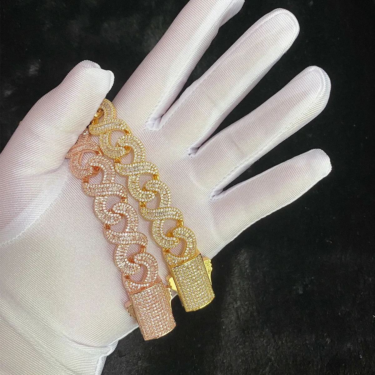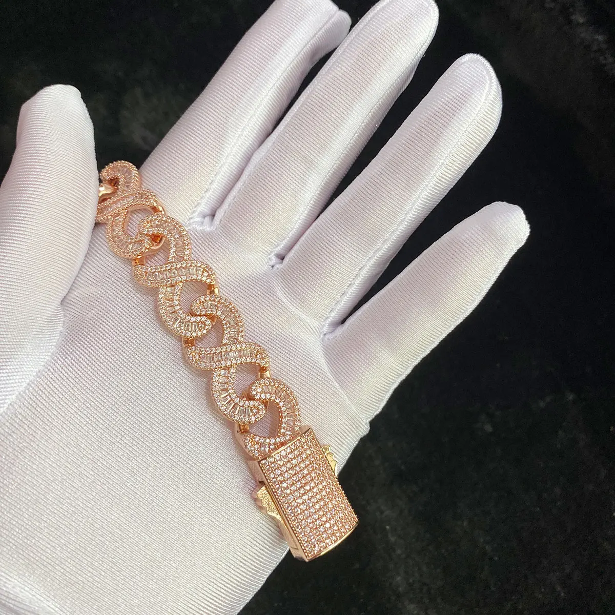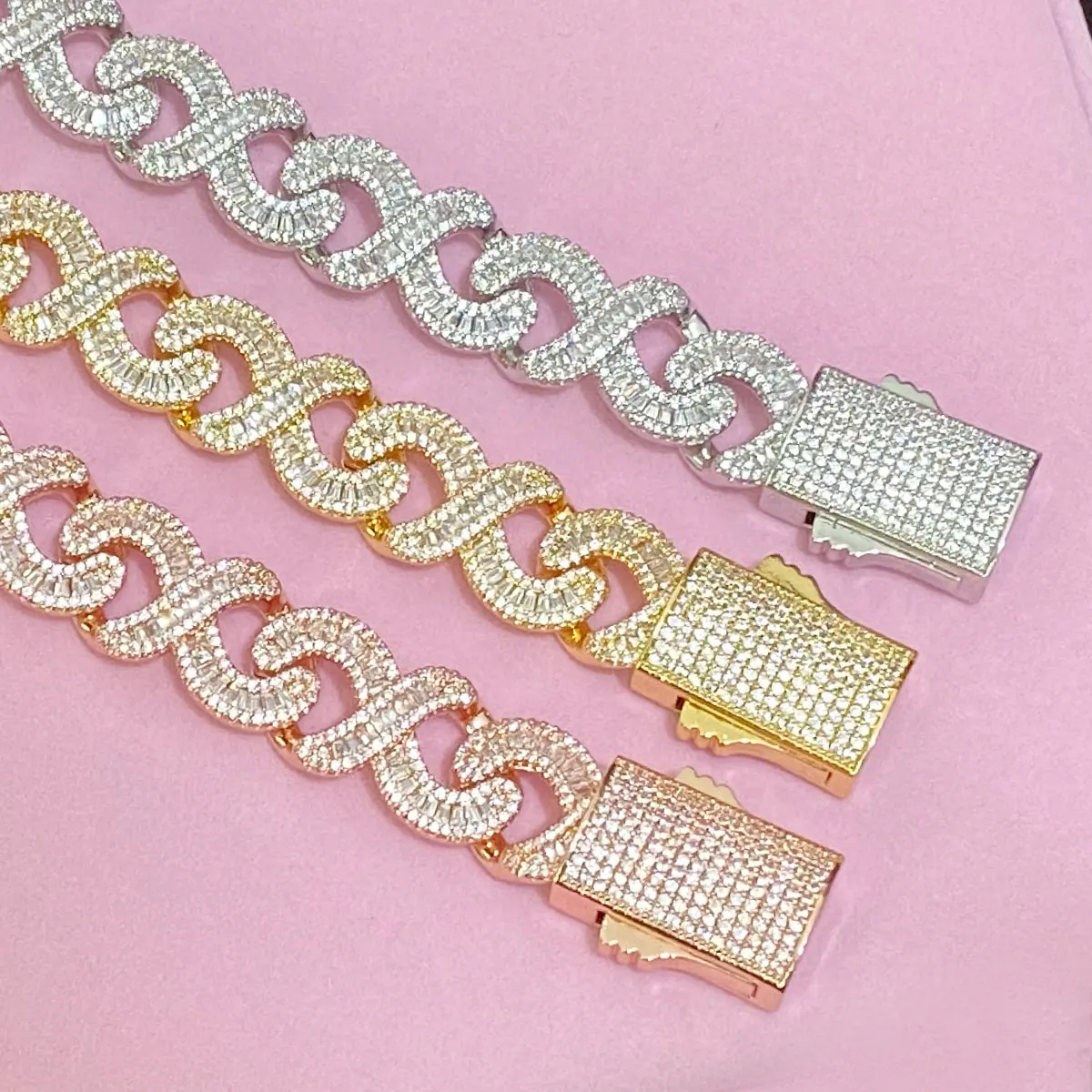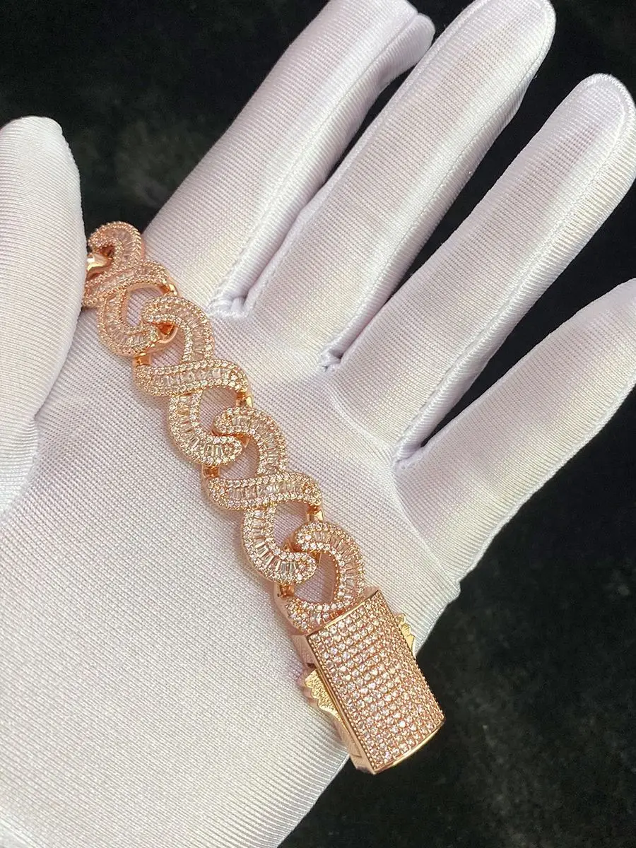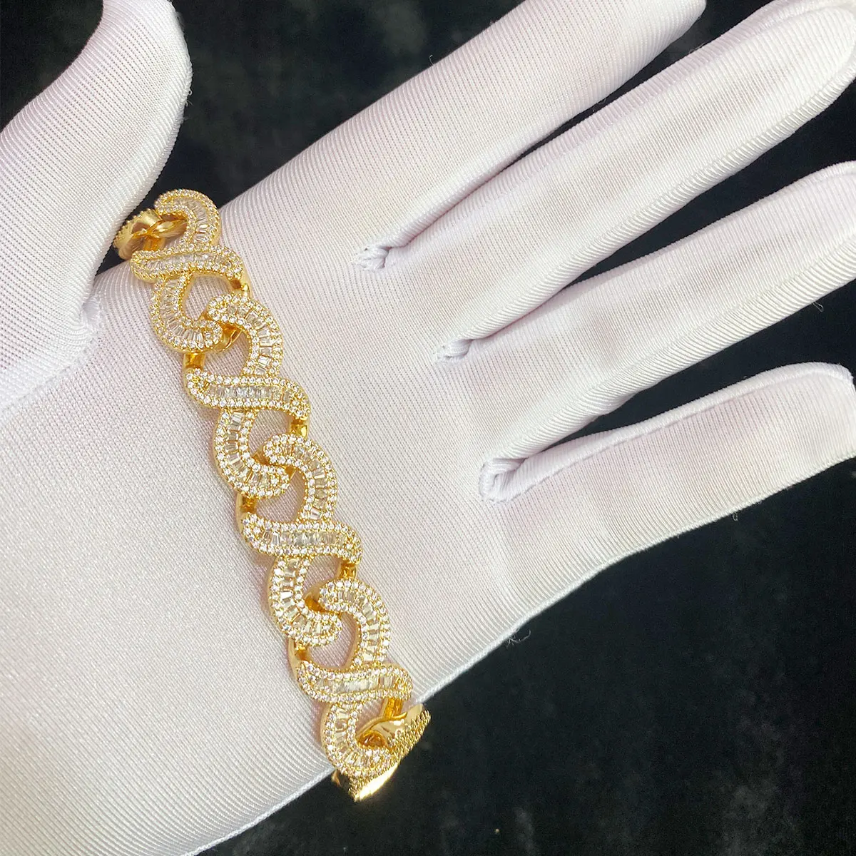 Drip Spring Baguette Infinity Bracelet – Real Gold-Plated Cuban Link Hip Hop Jewelry for Women
