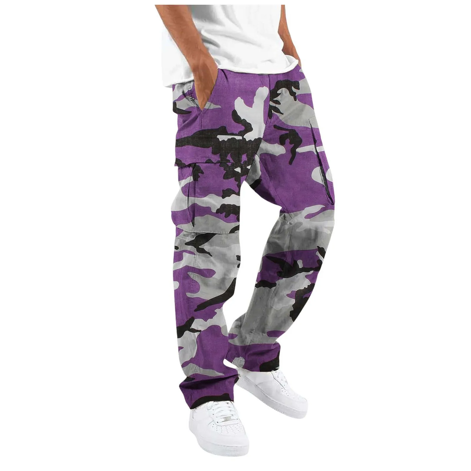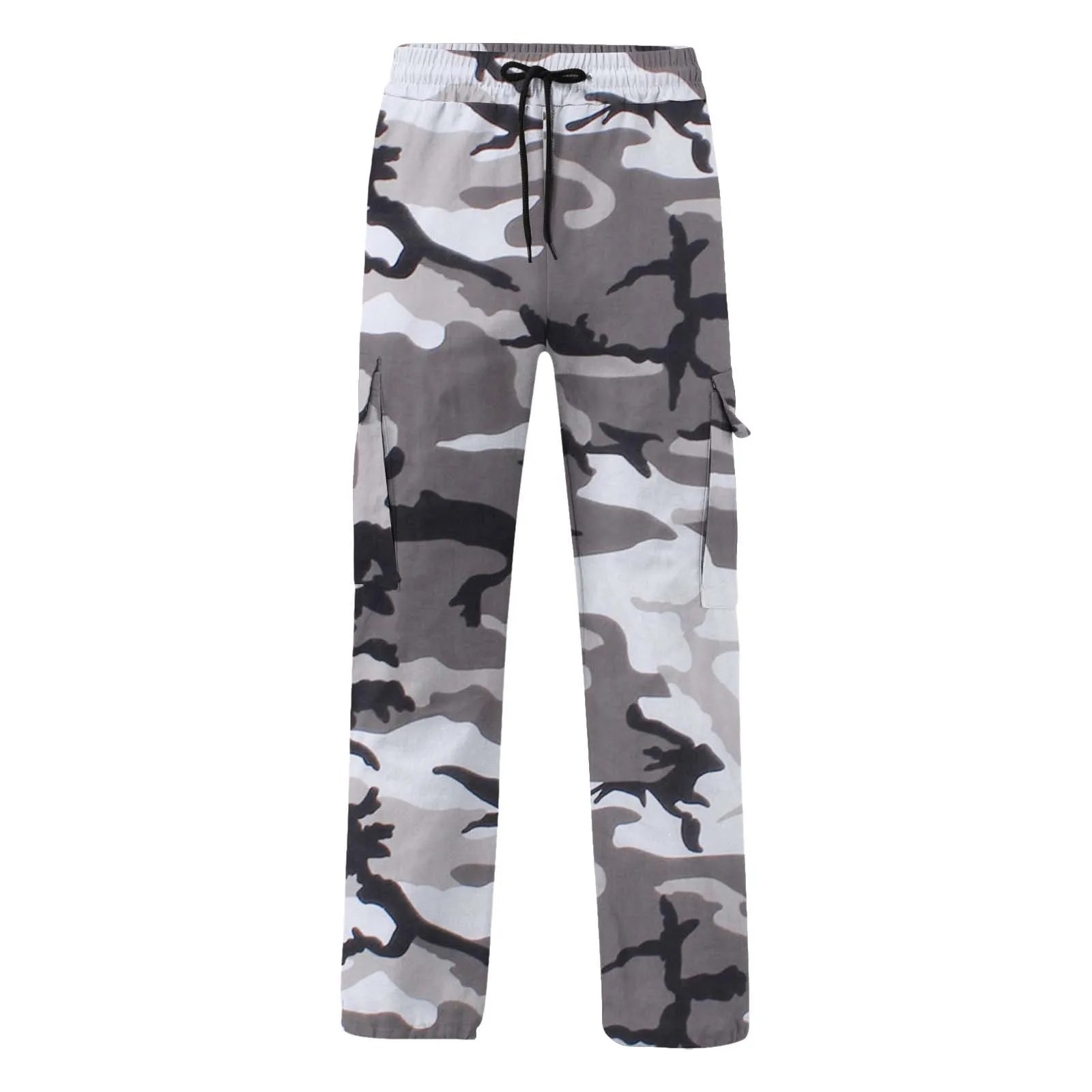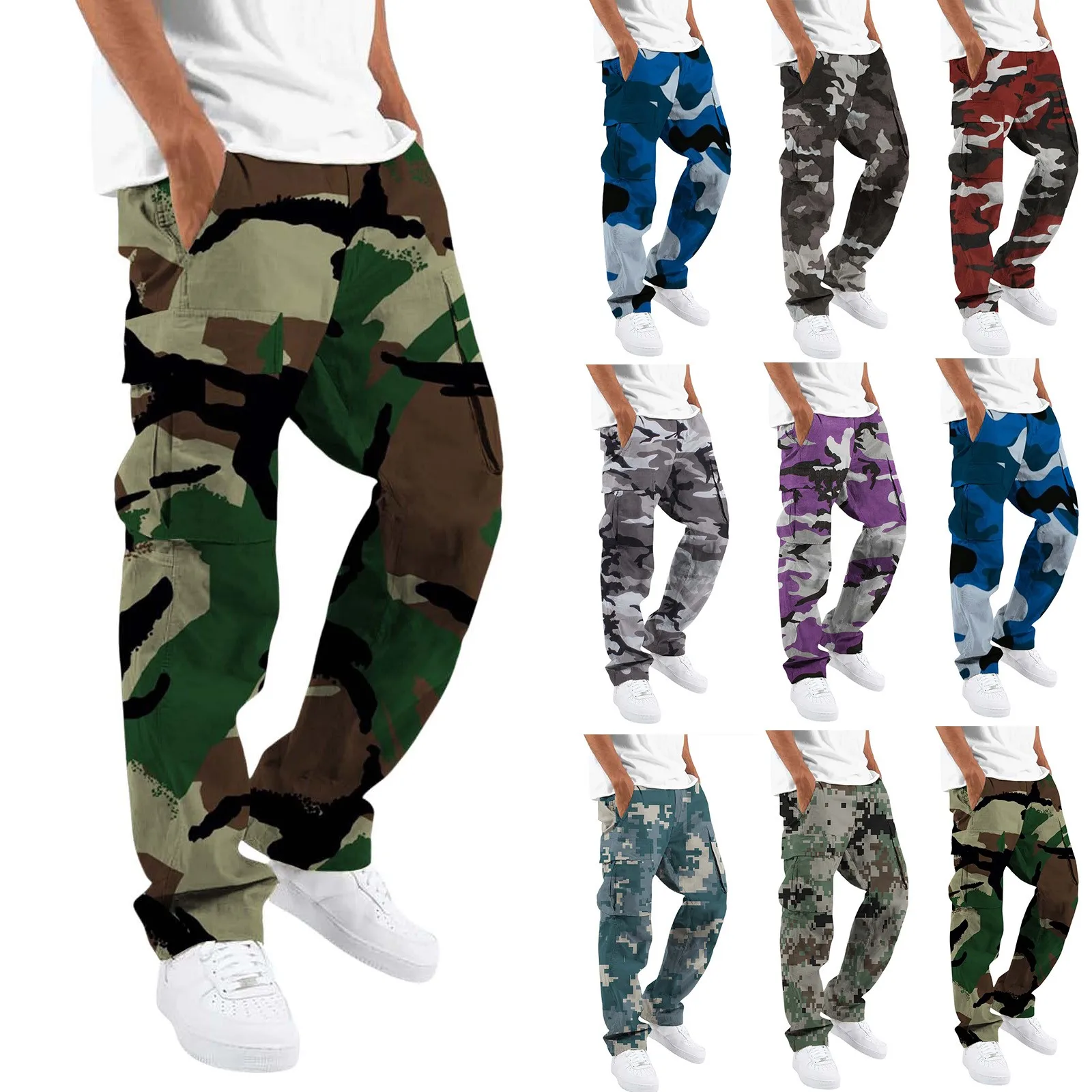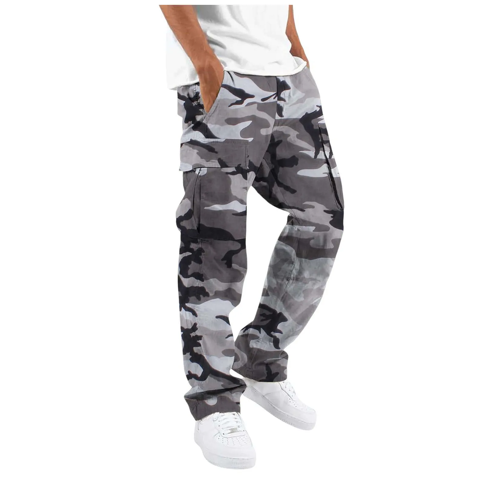 Men Cargo Pants Summer Drawstring Elastic Waist Casual Joggers Pants Loose Fit Jogging Hiking Pants With Pockets