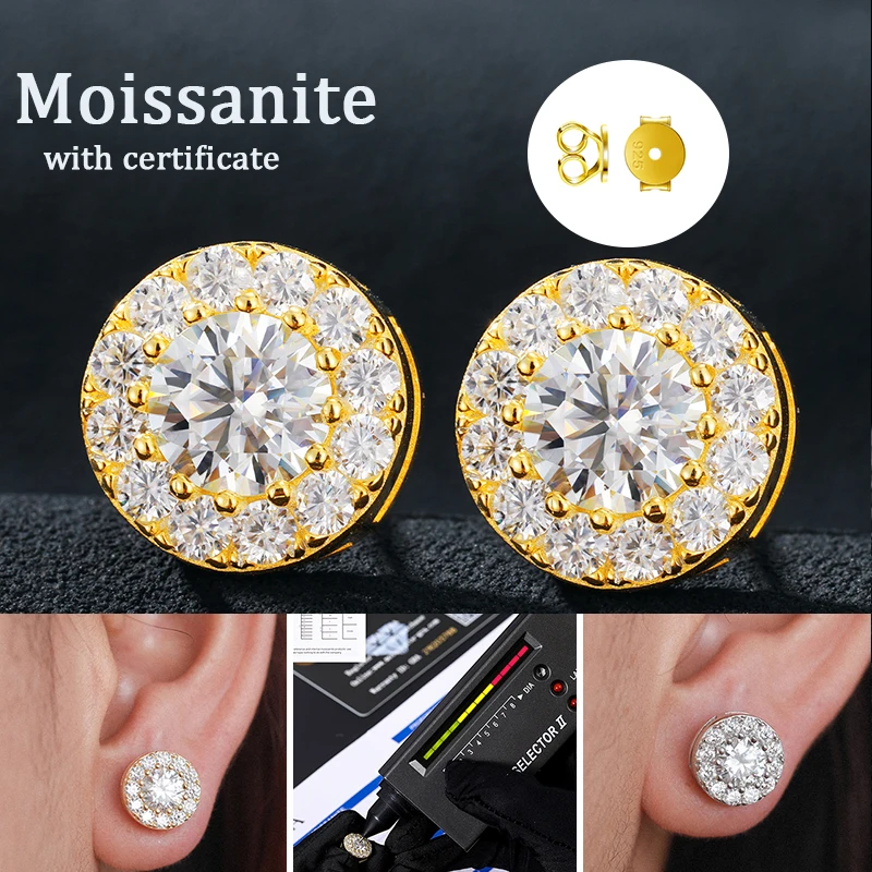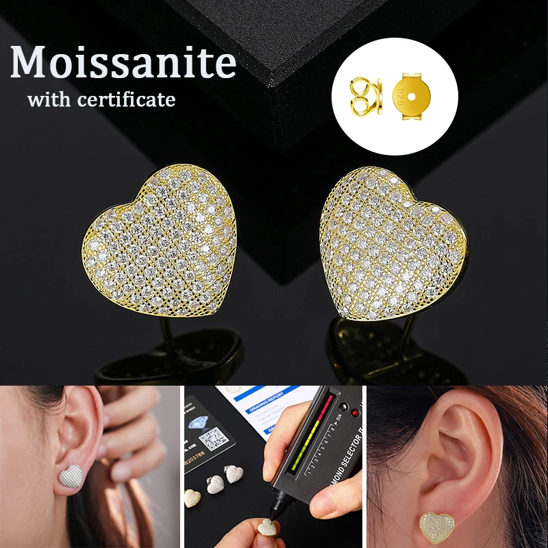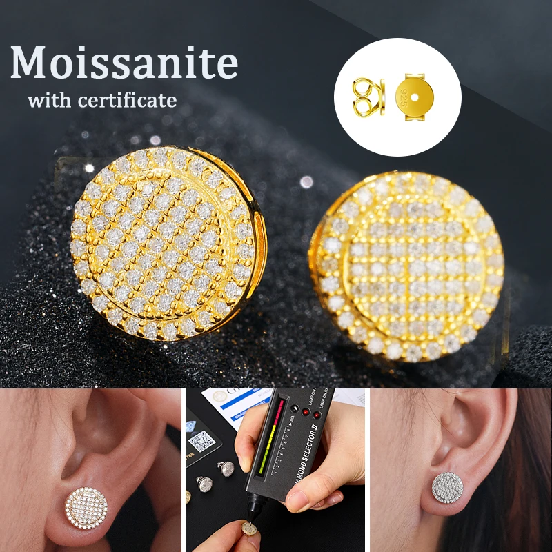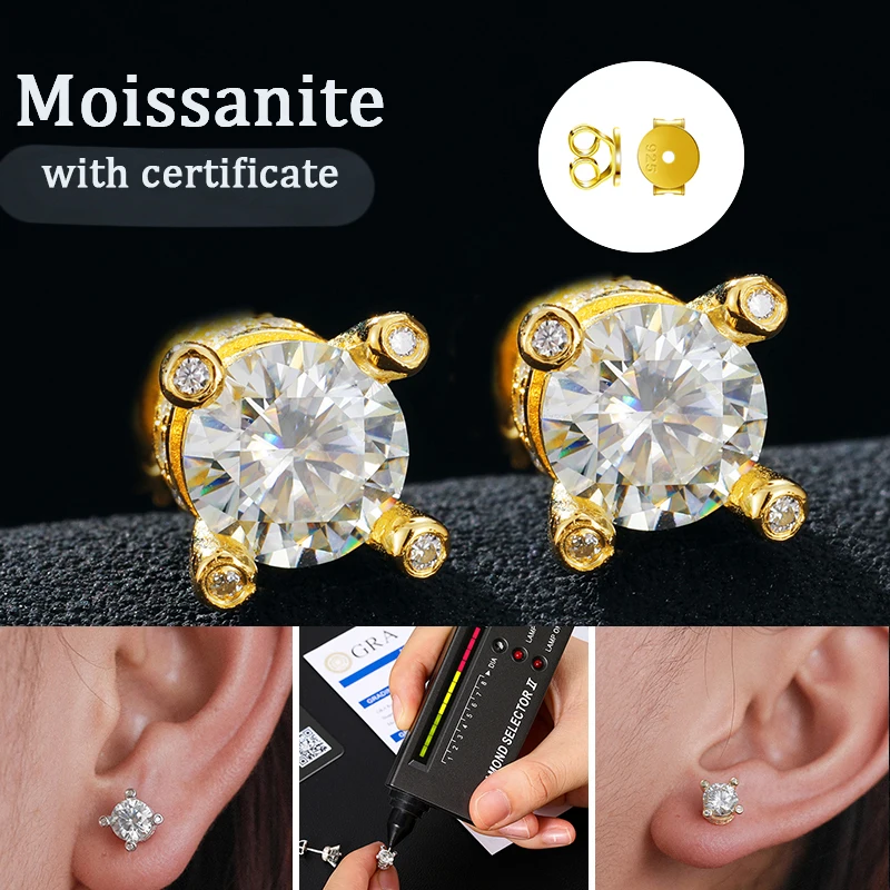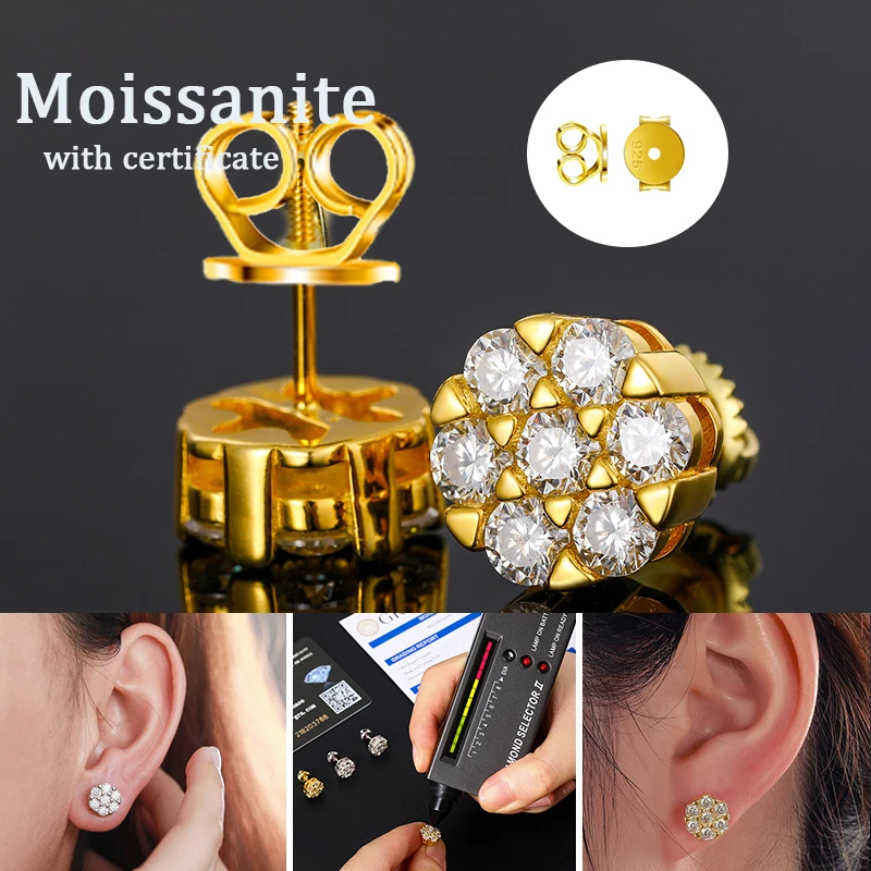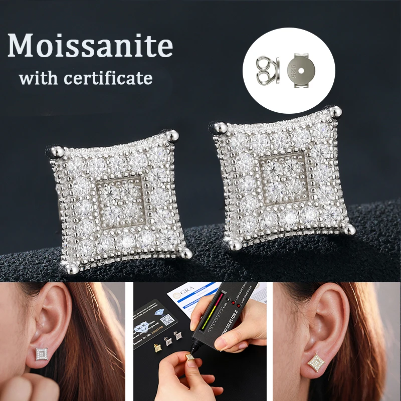Fashion Hip Hop Moissanite Earrings – 925 Sterling Silver Studs for Women, GRA Certified Jewelry Gift