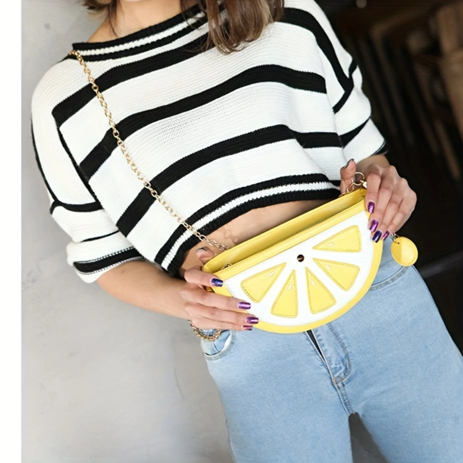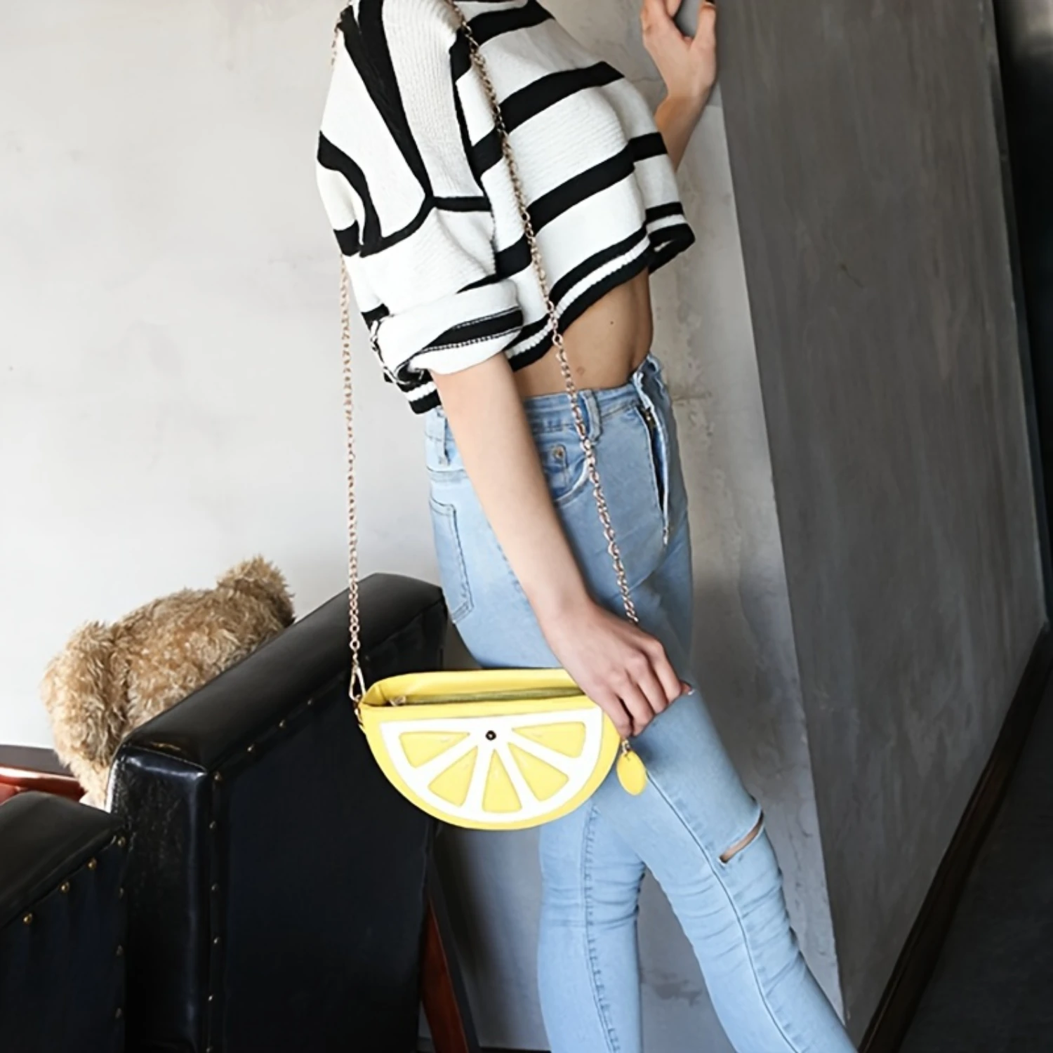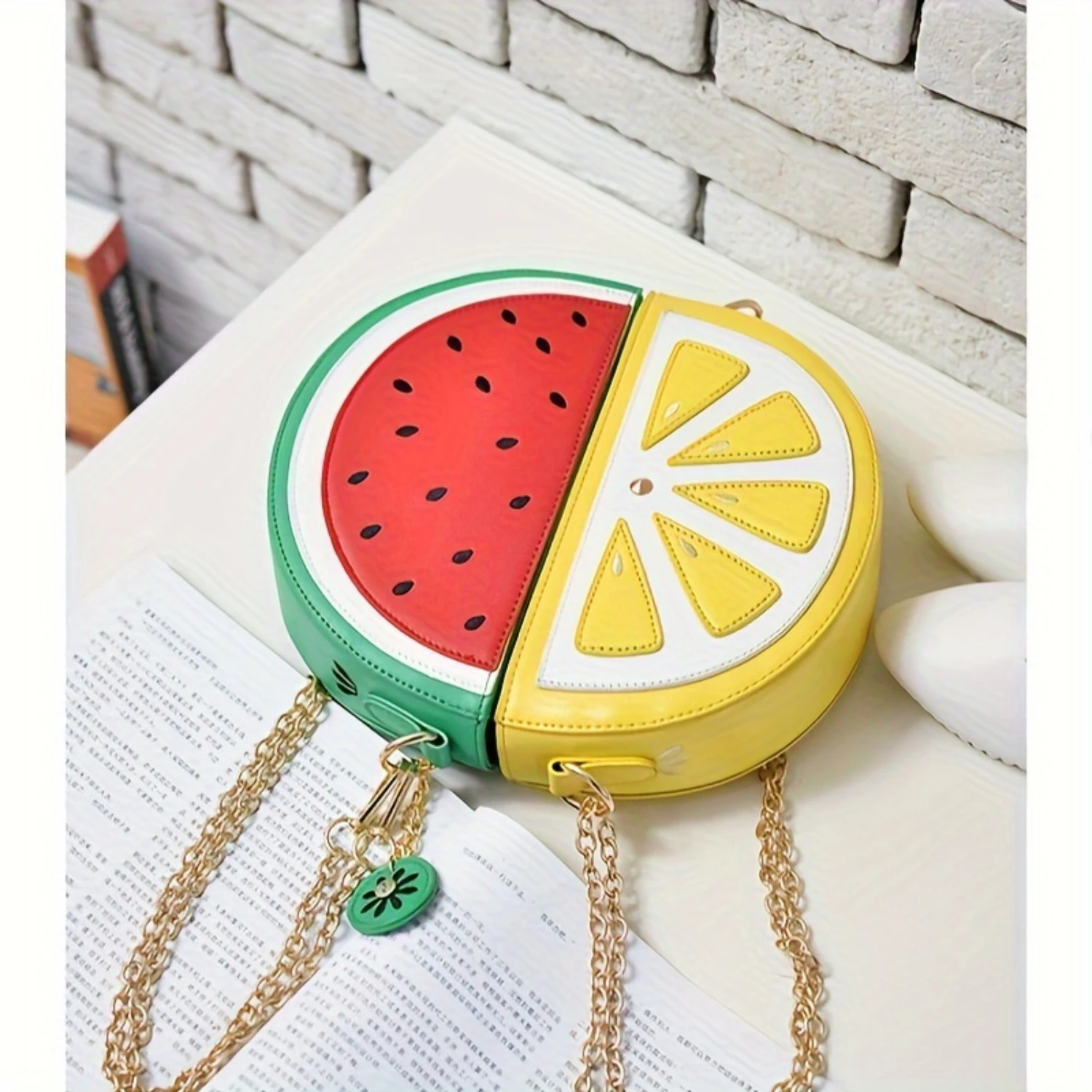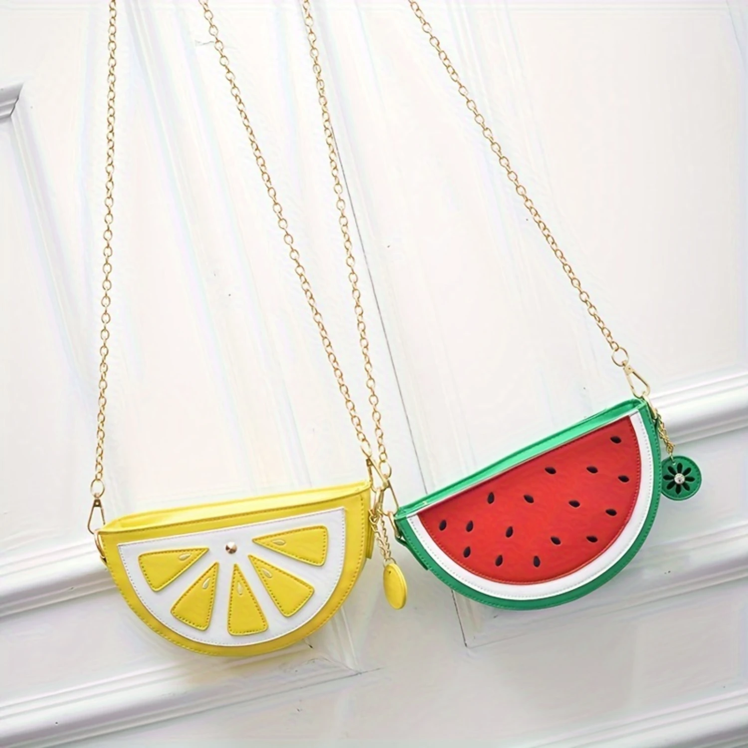 1. The Fruit Shaped Crossbody Bag is a fun and playful accessory that is perfect for adding a pop of color to any outfit. The watermelon and lemon print gives it a vibrant and trendy look, while the chain shoulder strap adds a touch of elegance.