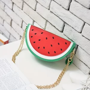 1. The Fruit Shaped Crossbody Bag is a fun and playful accessory that is perfect for adding a pop of color to any outfit. The watermelon and lemon print gives it a vibrant and trendy look, while the chain shoulder strap adds a touch of elegance.