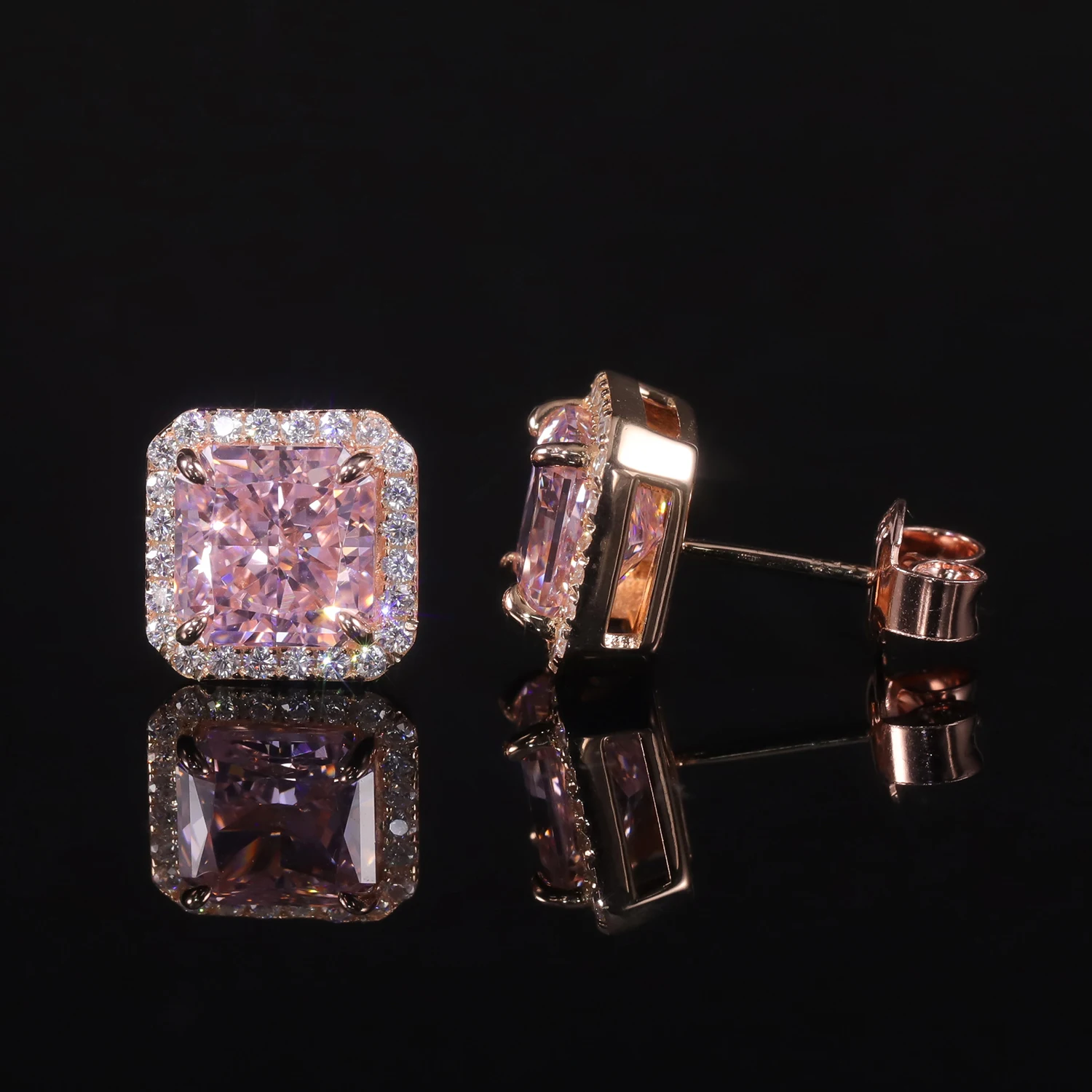 GEM’S BALLET 925 Sterling Silver Pink Halo CZ Stud Earrings – Luxury Gift for Her