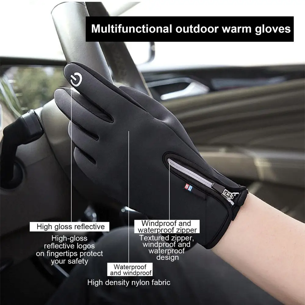 Product features: This outdoor glove is made of water-proof fabric, thickened with velvet to keep warm, the fingers are sensitive to the touch screen, and the palm is wear-resistant and non-slip.