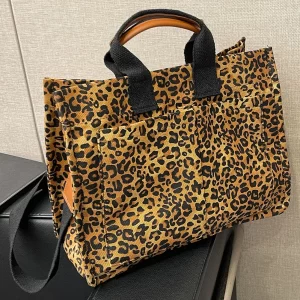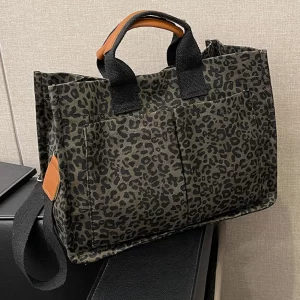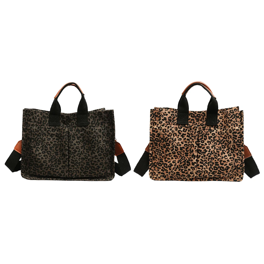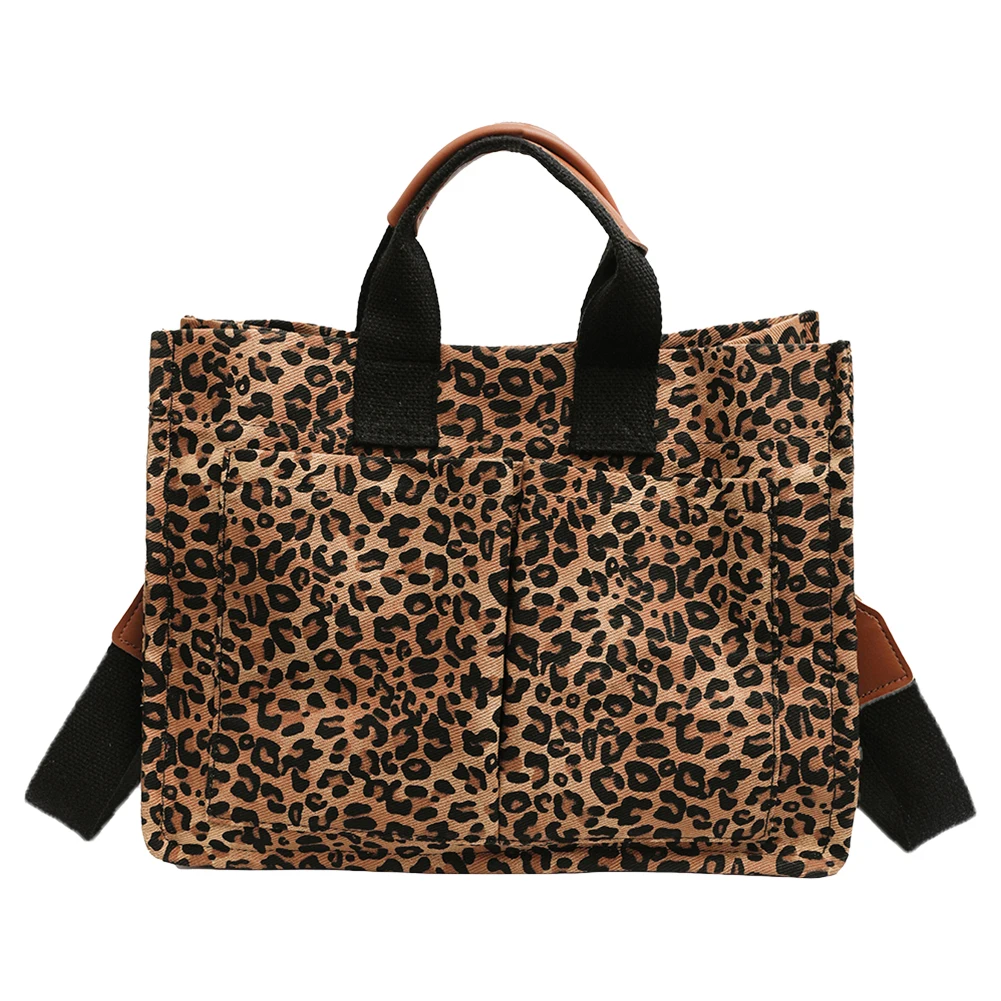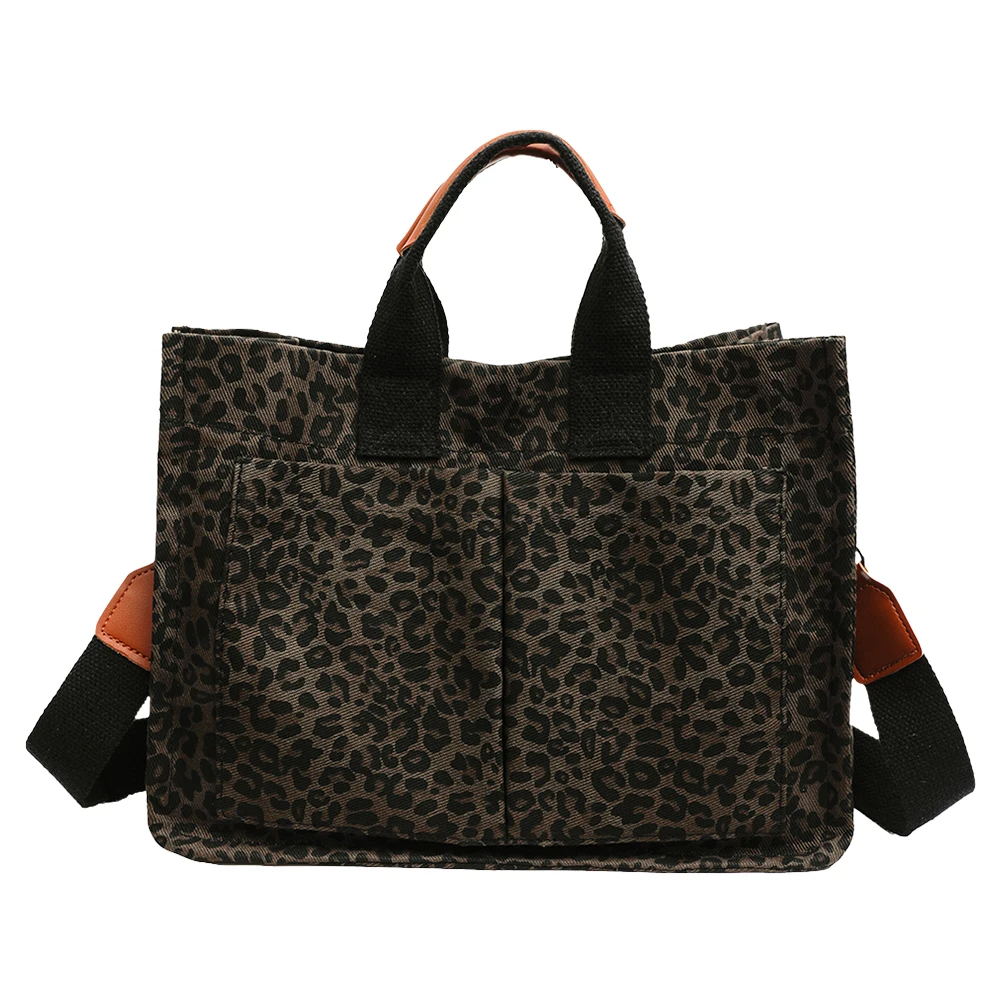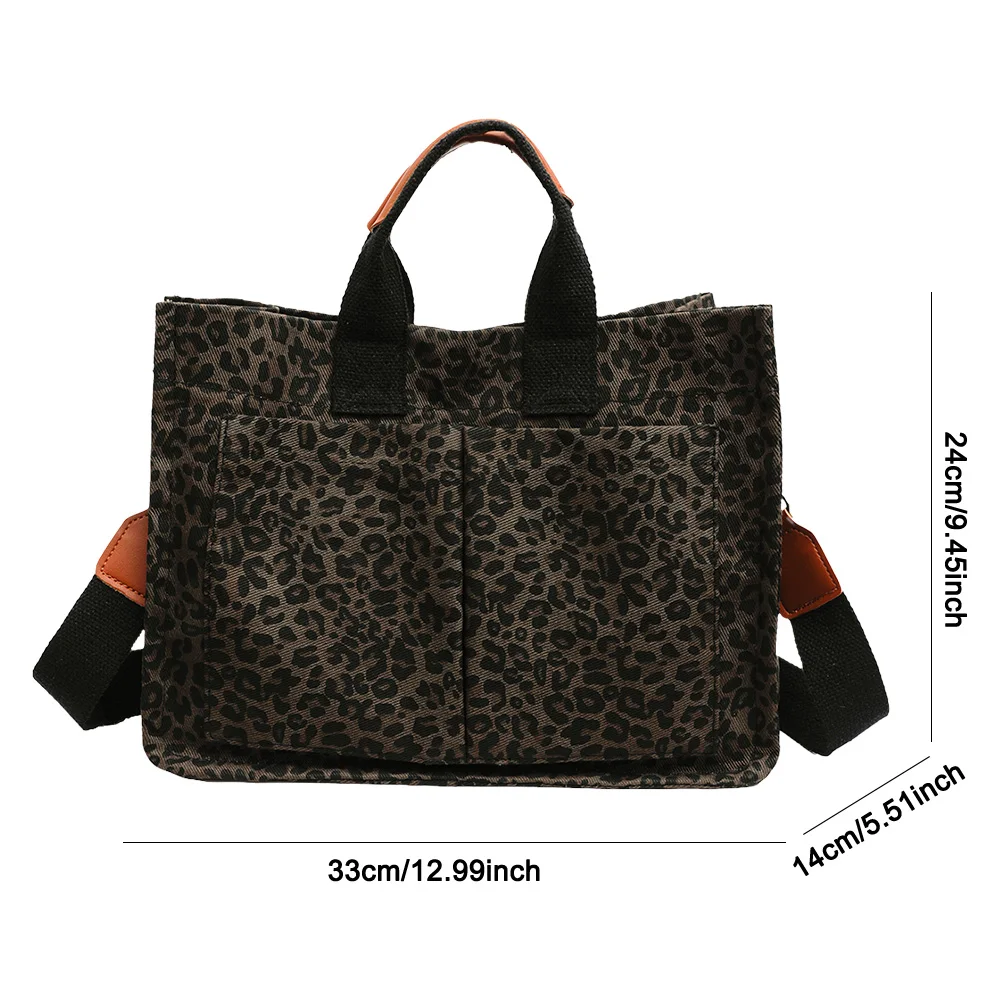 Canvas Shoulder Bag with Pockets Leopard Print Crossbody Bag Work Bags Casual Briefcase for Women Travel Office School