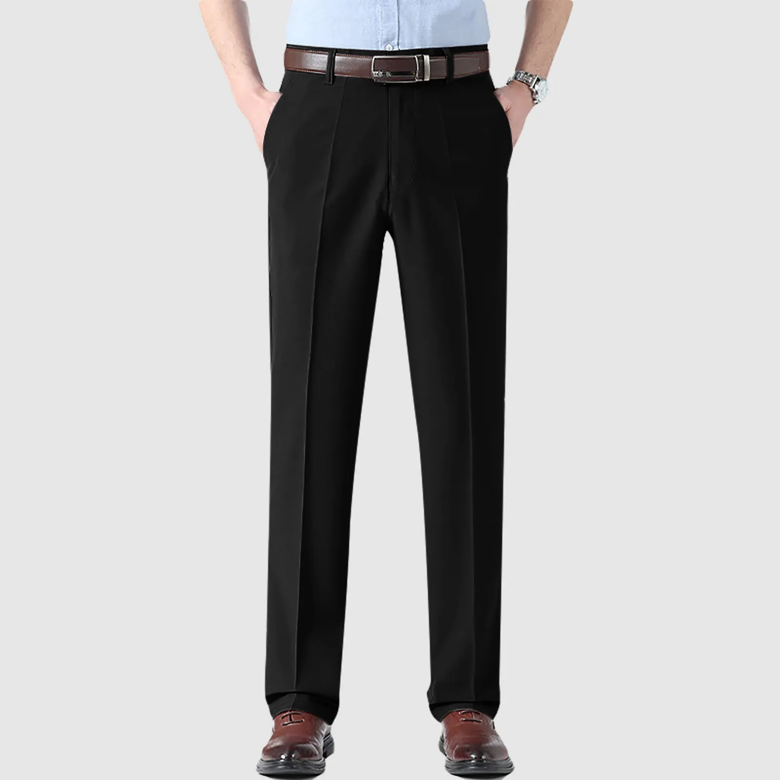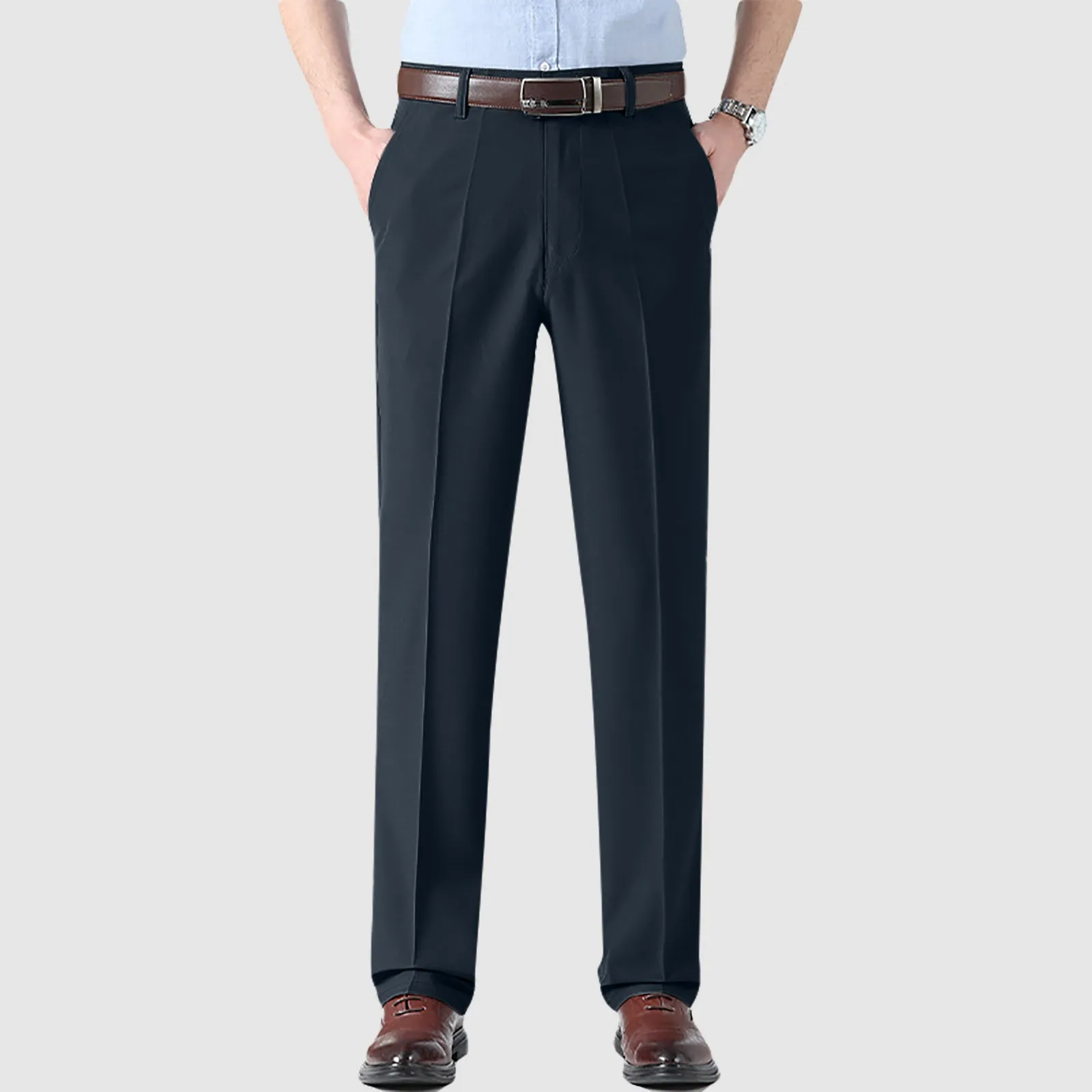 Mens Mynx Hidden Expandable Waistband Classic Fit Front Pleated Dress Pant