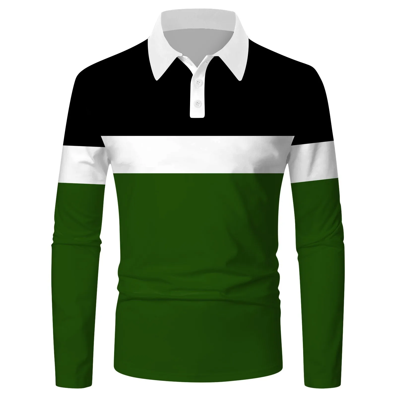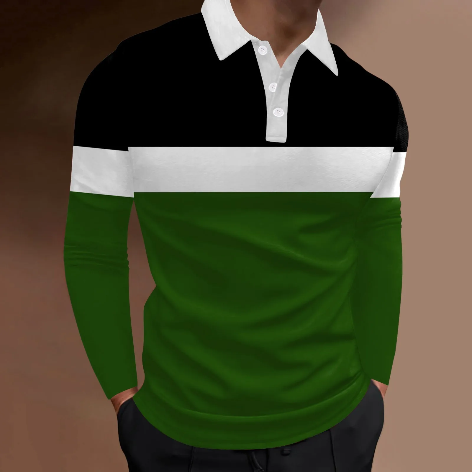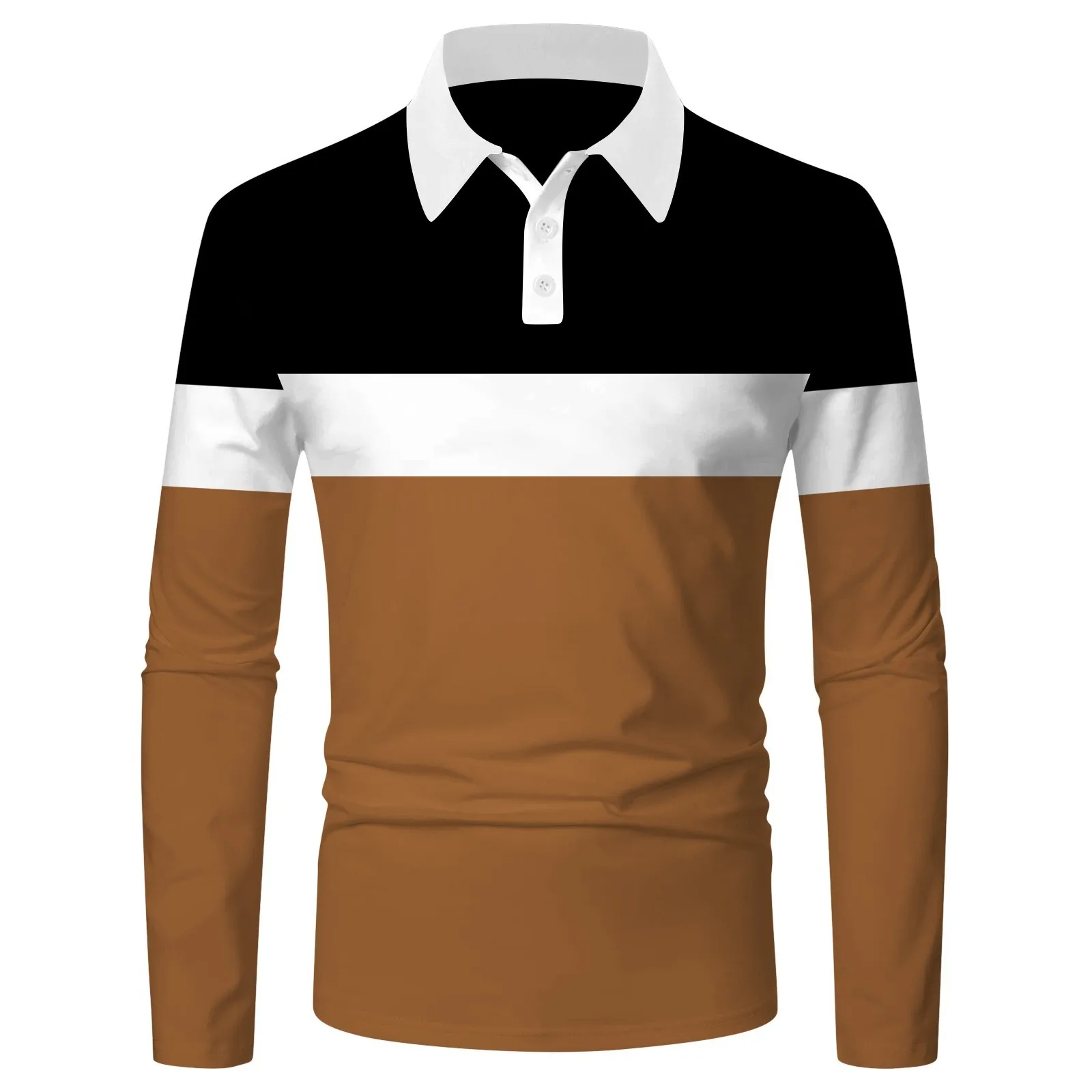 Men’s Four Seasons Leisure Fashion Stitching Color Contrast Design Lapel Button Long Sleeve Top
