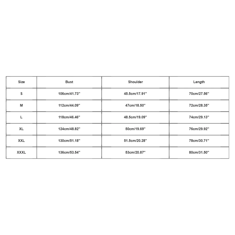 | Size:XXXL | Bust:136cm/53.54” | Shoulder:53cm/20.87” | Length:80cm/31.50” |