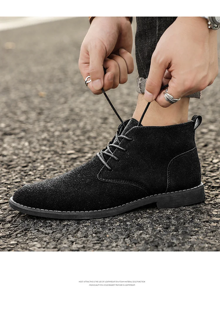 Men Lace Up British Style Classic Suede Boots.