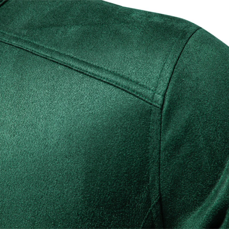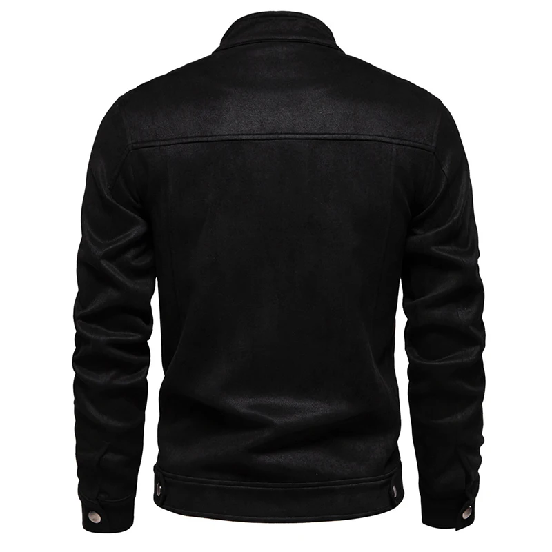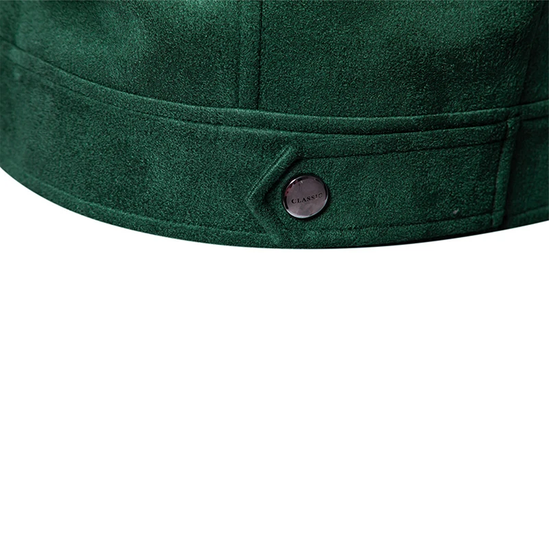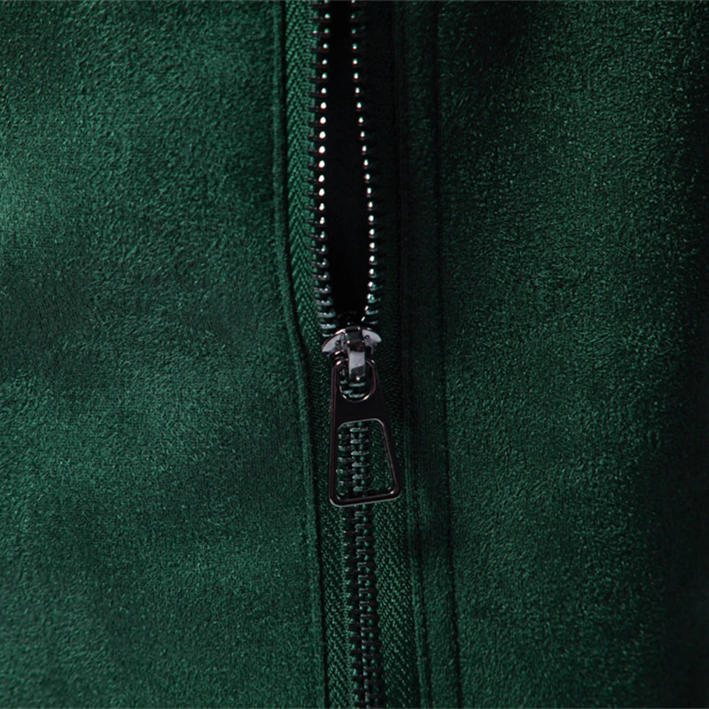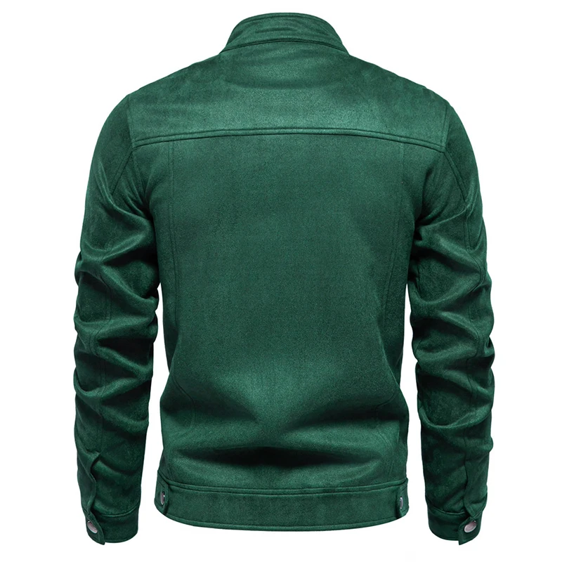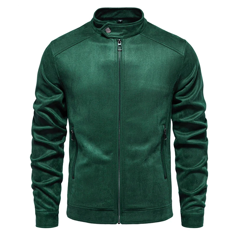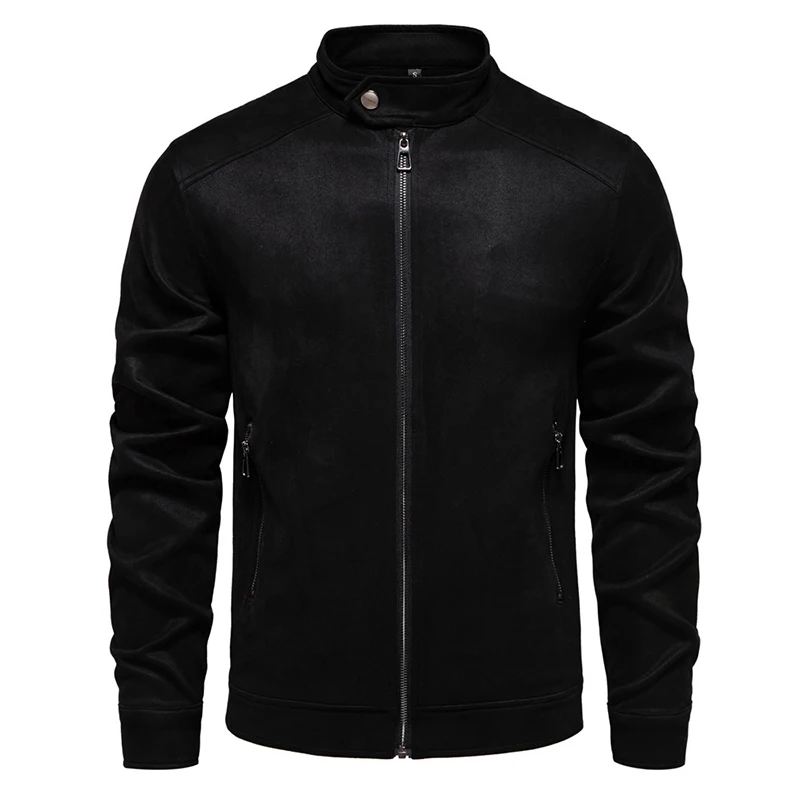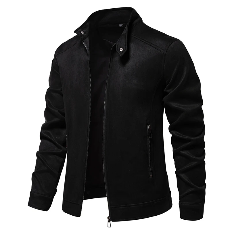 Men’s Suede Jacket Solid Color Stand Collar Bomber Jacket Long Sleeve Coat Fall Casual Zipper Outerwear