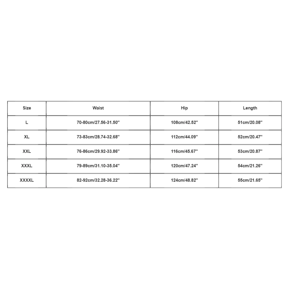 | Size:XXXXL | Waist:82-92cm/32.28-36.22” | Hip:124cm/48.82” | Length:55cm/21.65” |
