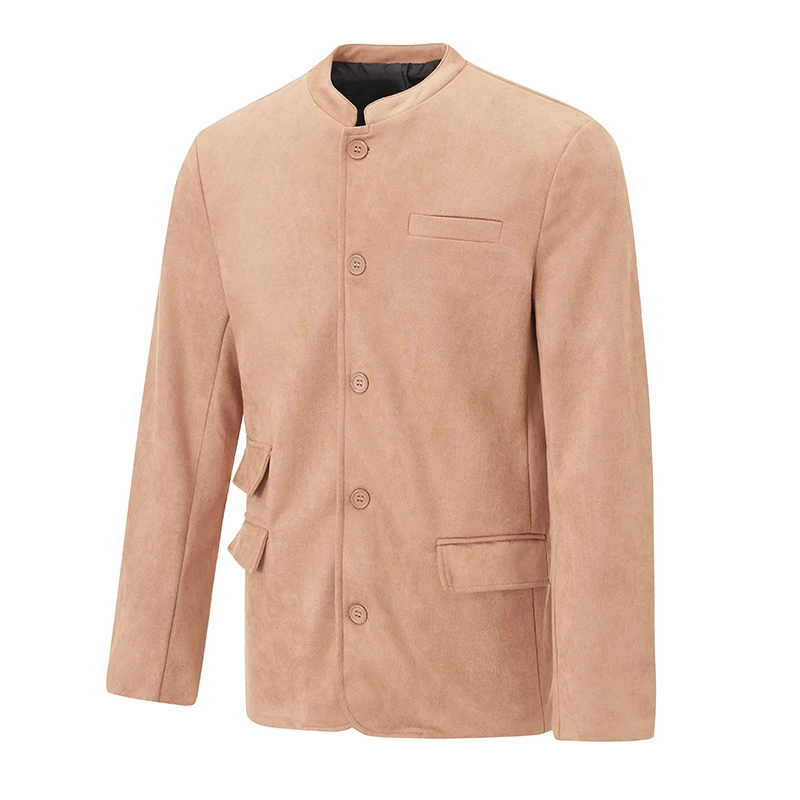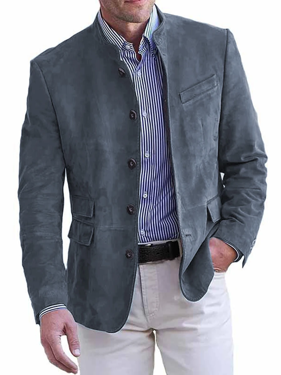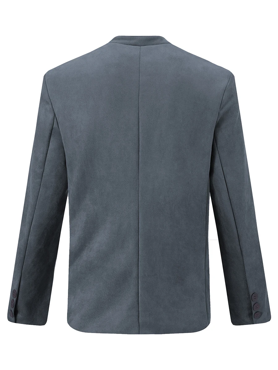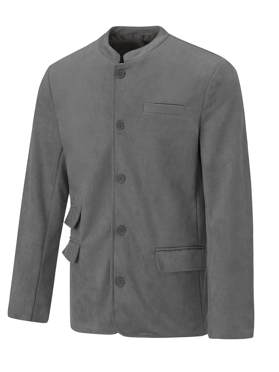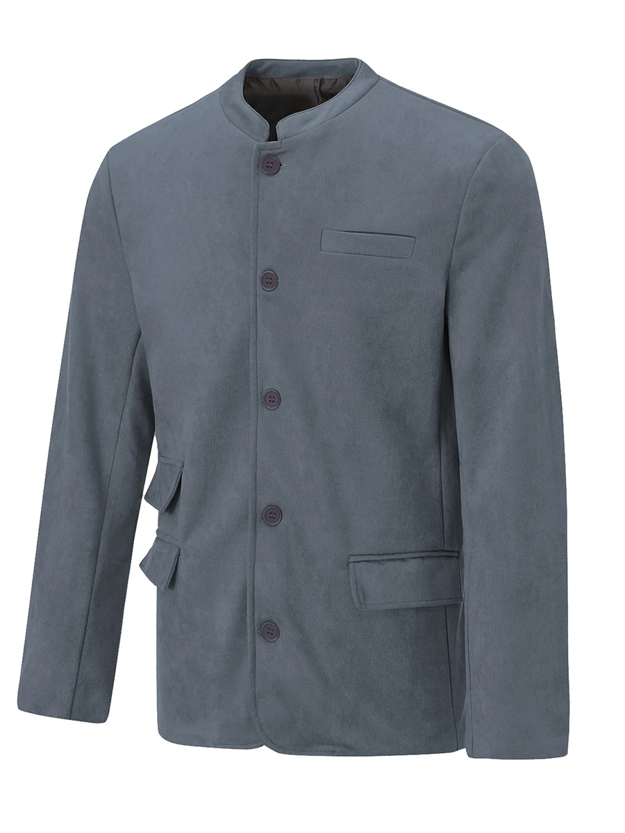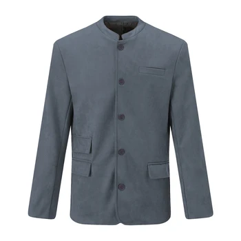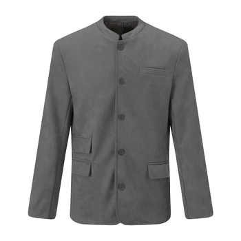 Mens Blazer, Vintage Long Sleeve Stand Neck Button Closure Solid Business Jacket Casual Jacket
