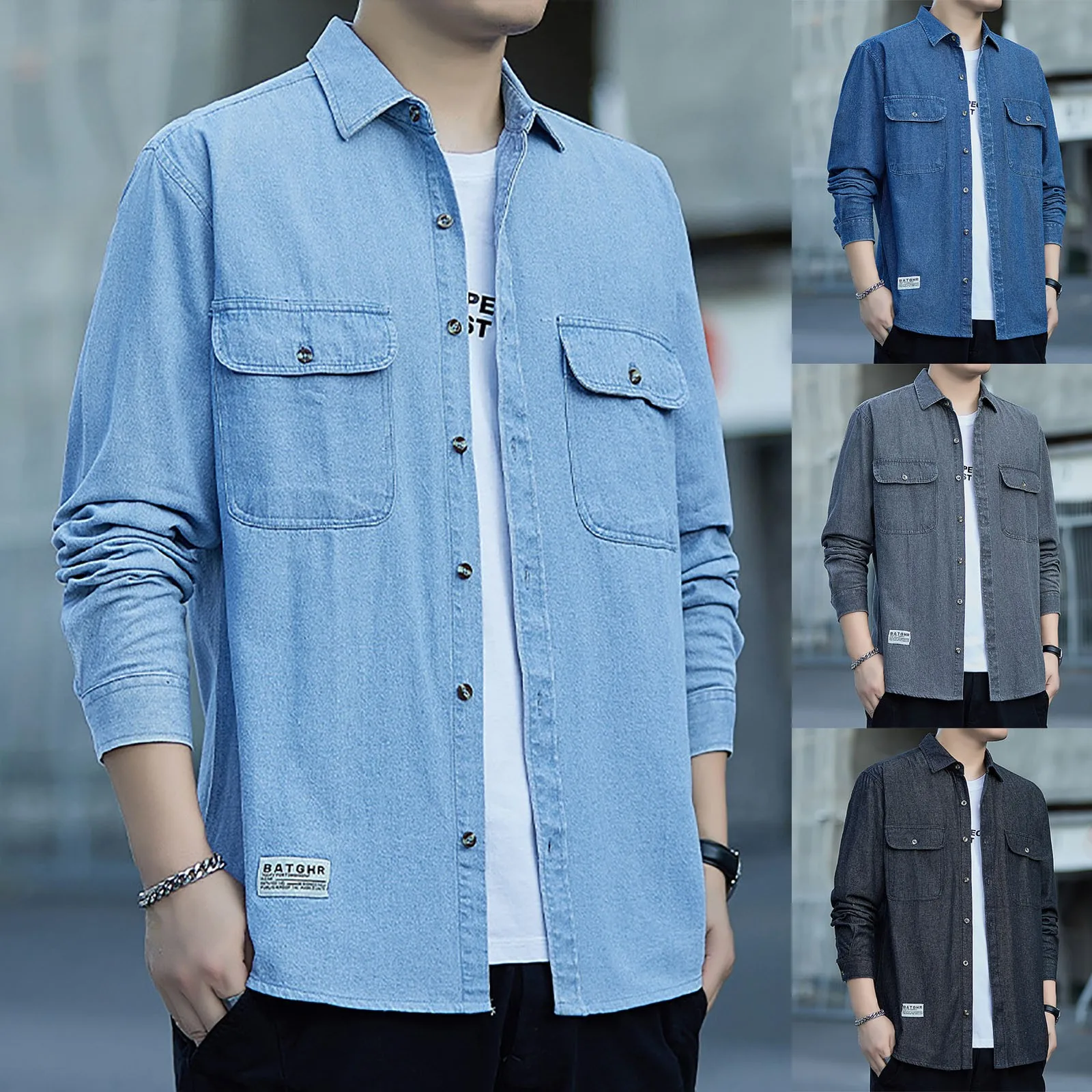 Men Shirt Vintage Denim Jacket Men 2024 New Spring And Fall Loose Casual Big Yards Workwear Long Sleeved Shirt Man