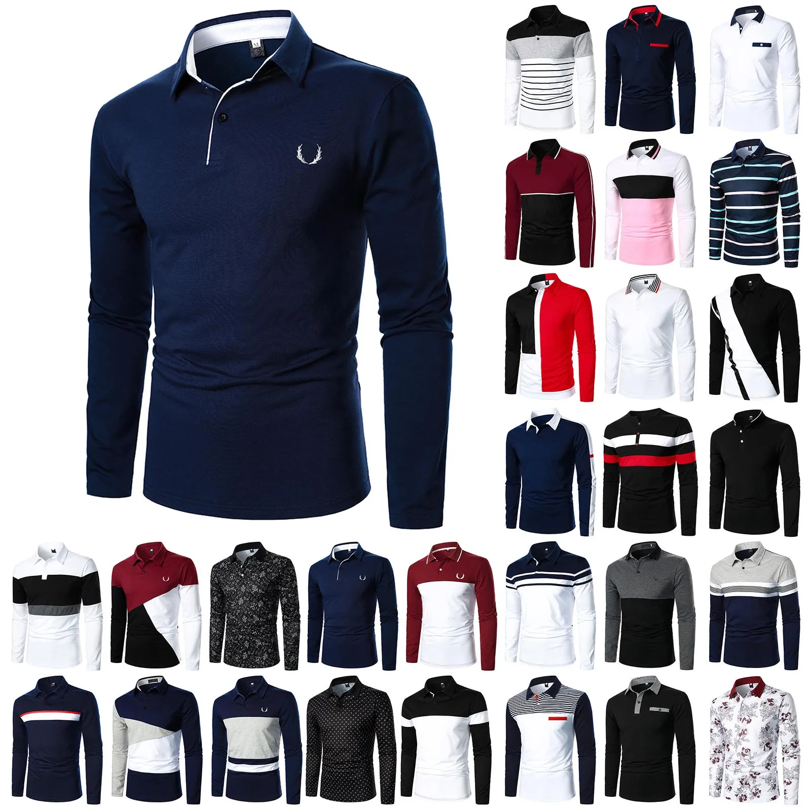 Men’s Stitching Casual Loose Fashion Design Lapel Long Sleeve Top
