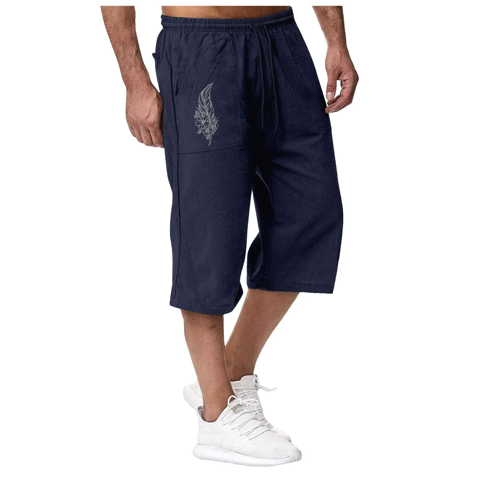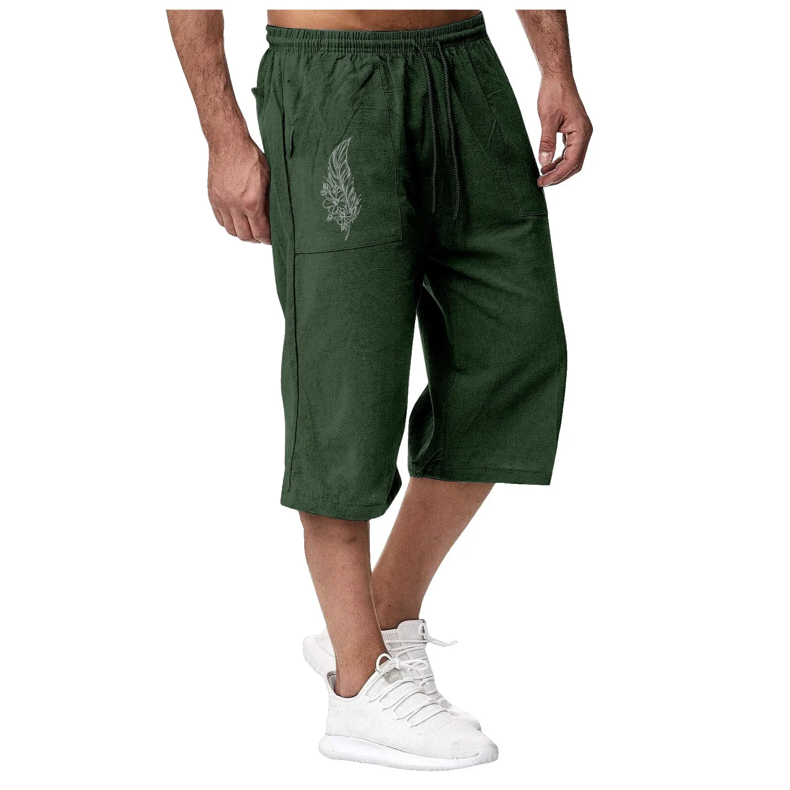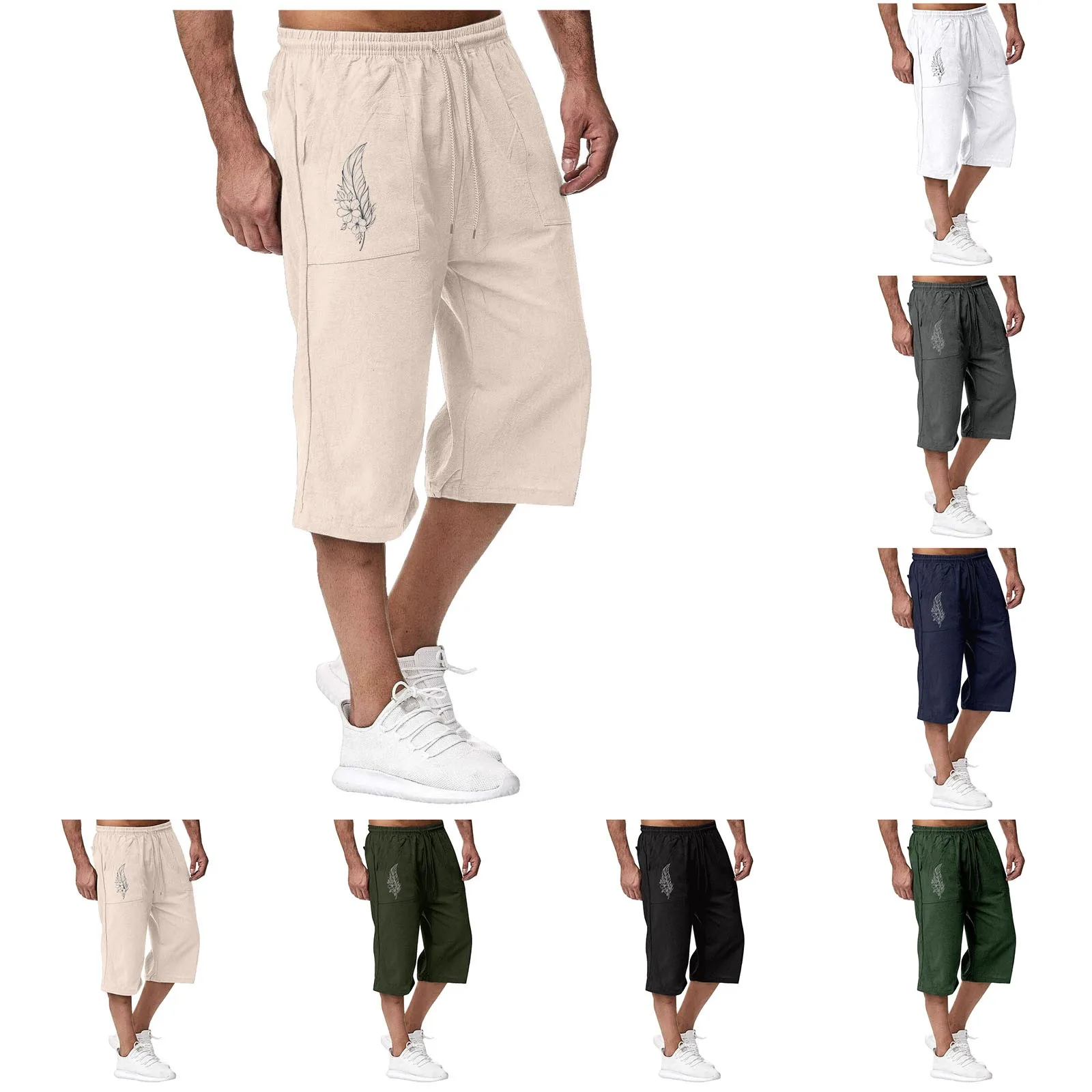 Mens Casual Shorts Colorful Sports Beach Shorts Straight Long Elastic Waist Wide Leg Pant