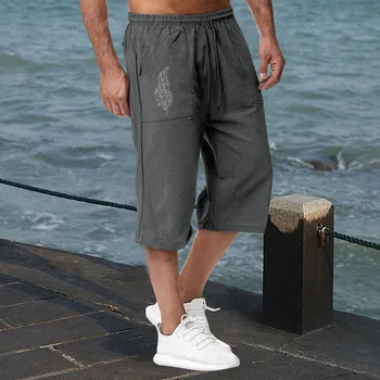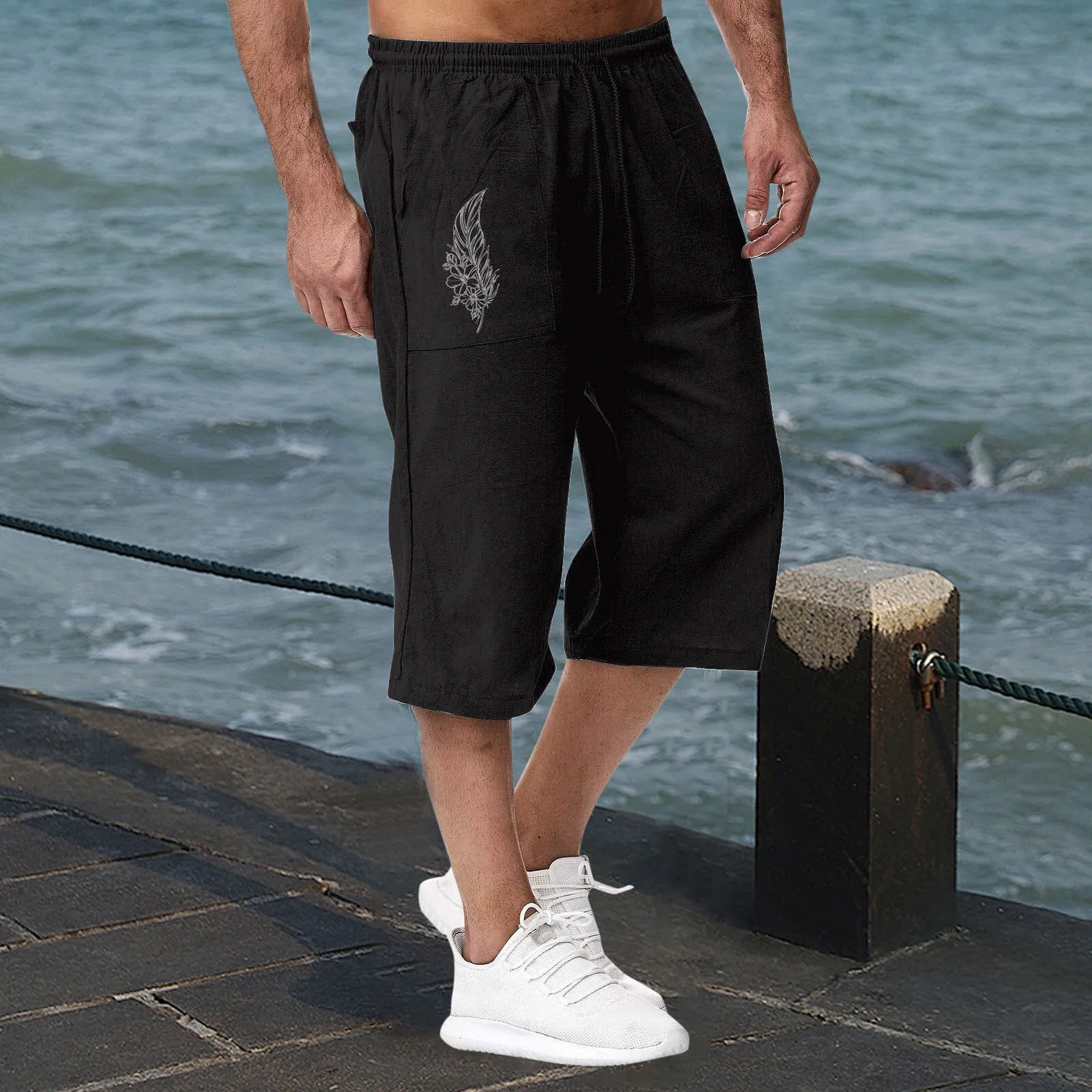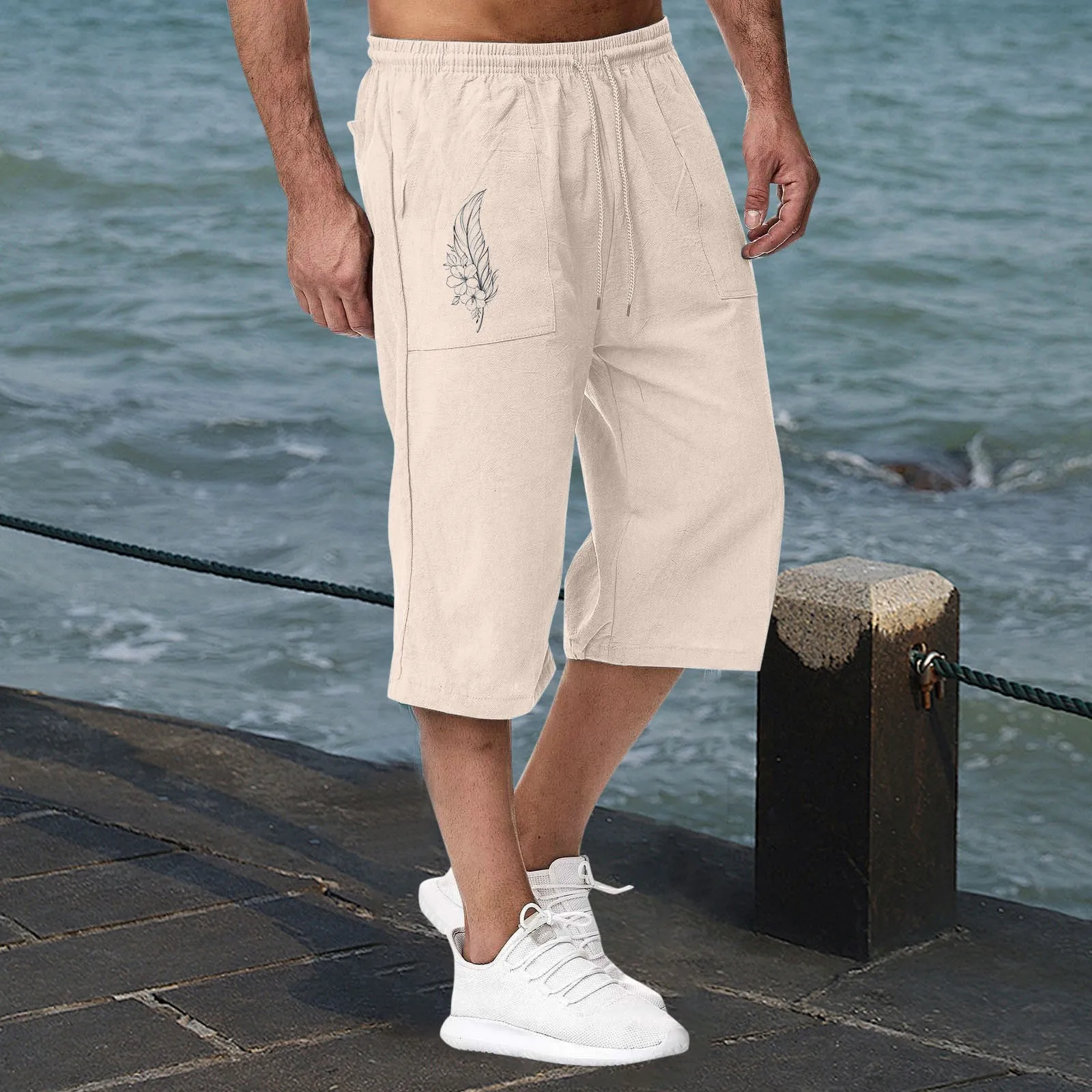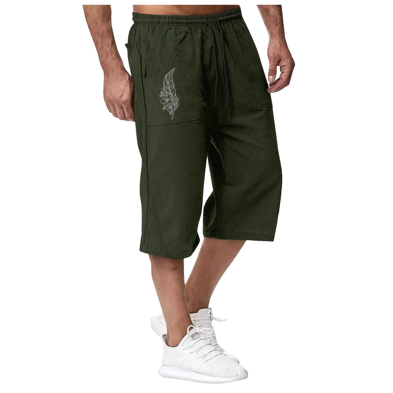 Mens Casual Shorts Colorful Sports Beach Shorts Straight Long Elastic Waist Wide Leg Pant