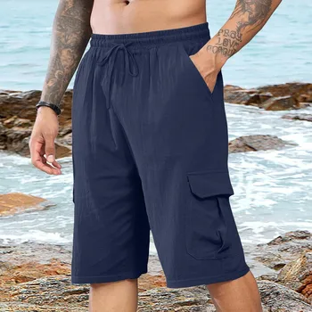 Mens Linen Shorts Elastic Waistband Classic Fit Summer Beach Casual Shorts