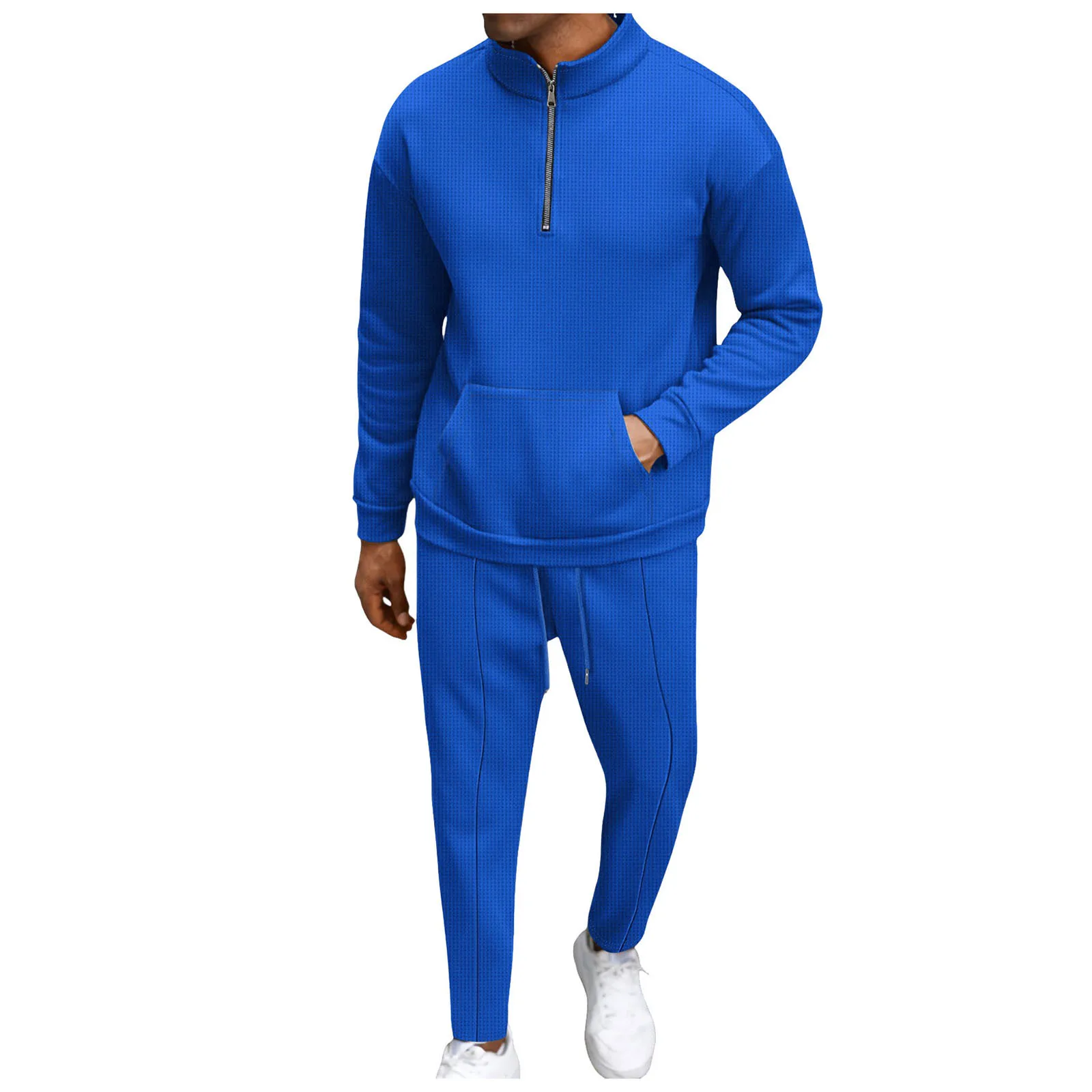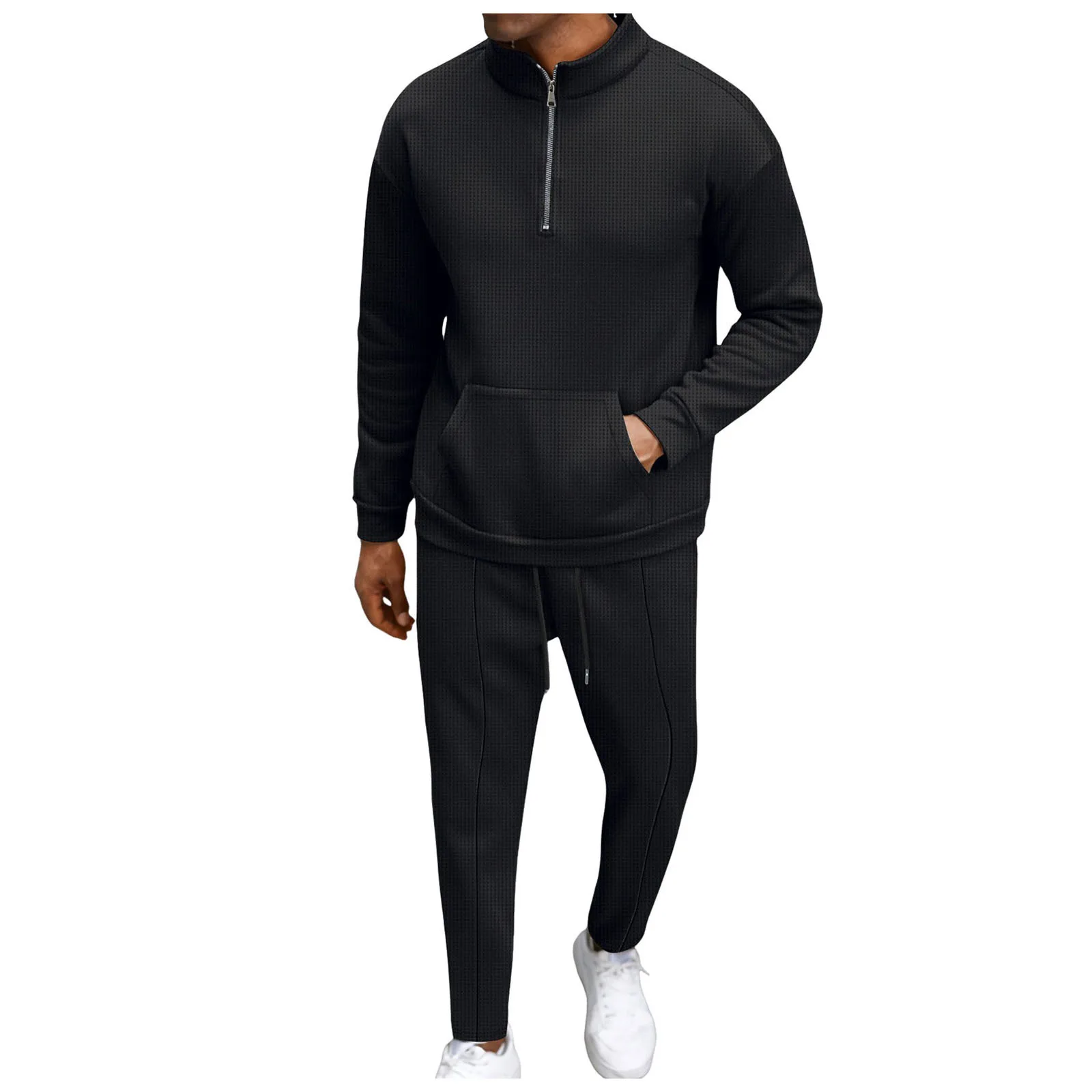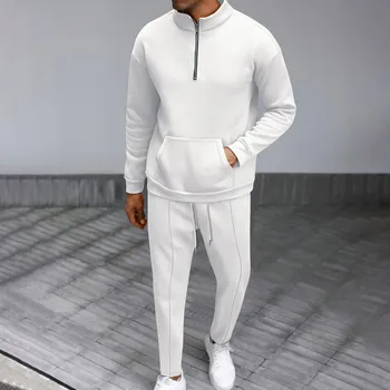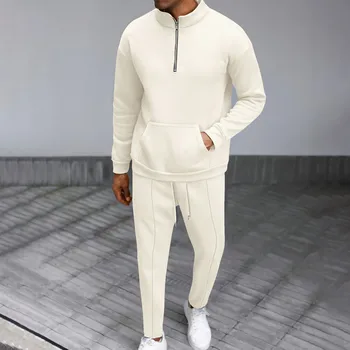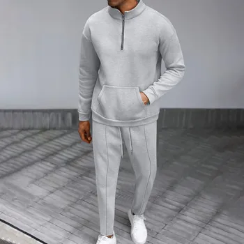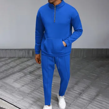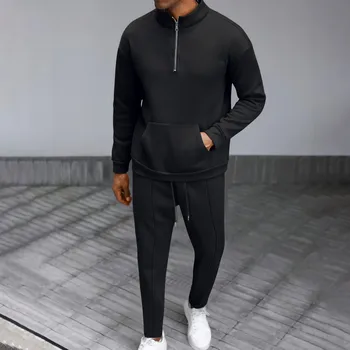 Men’s Fall High Neck Half Zip Pocket Solid Color Long Sleeve Hoodie Pant Casual Suit