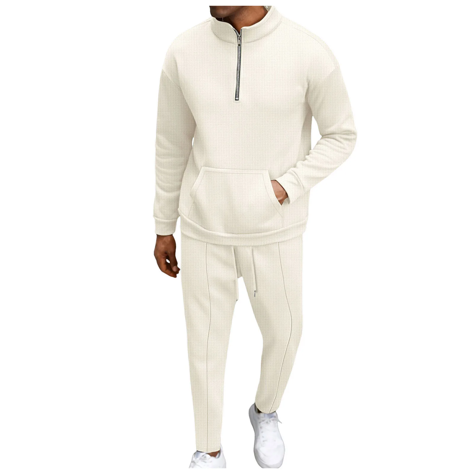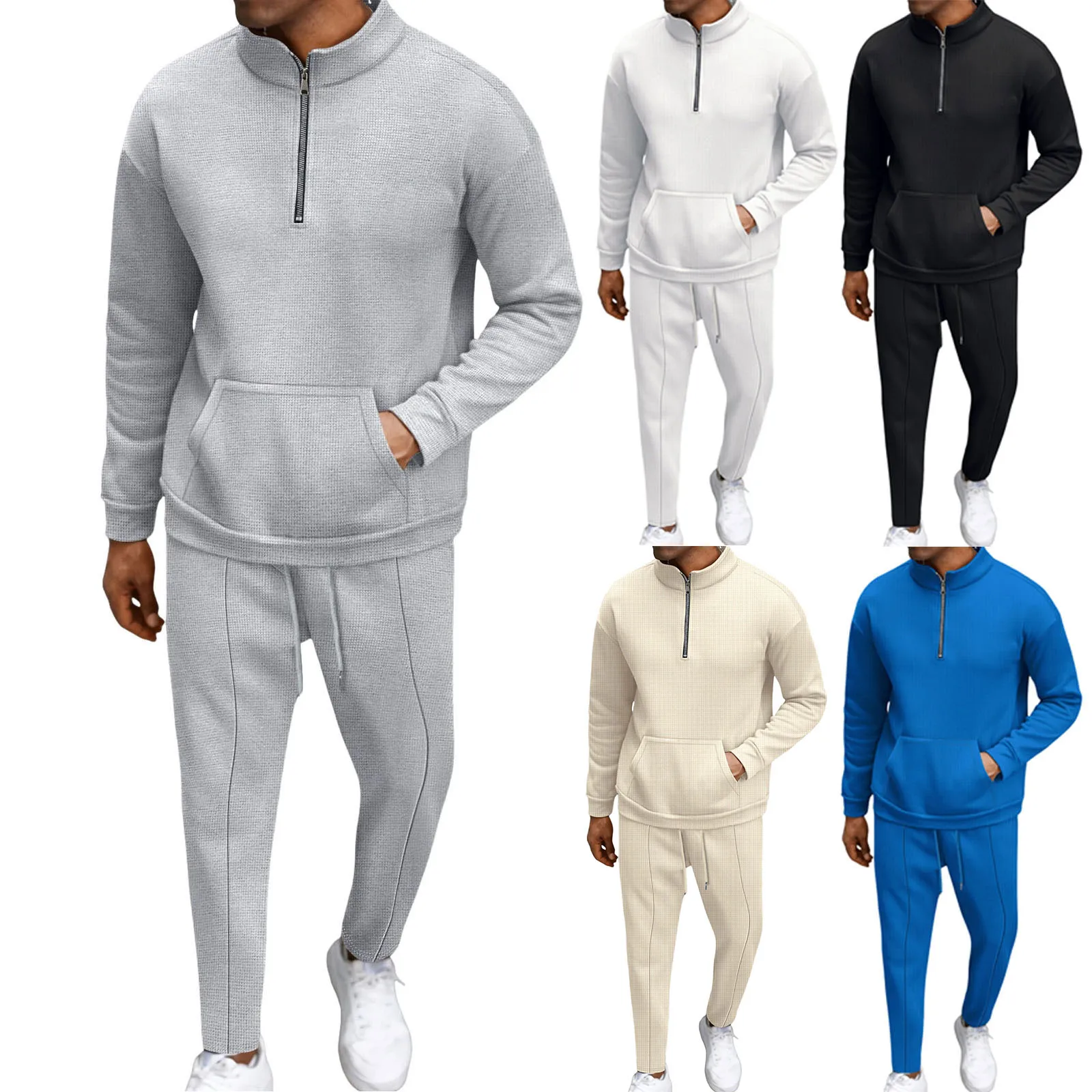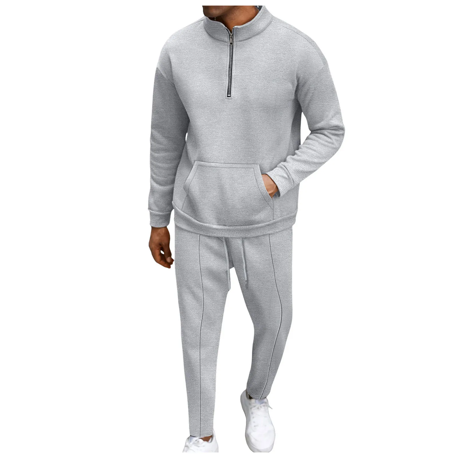 Men’s Fall High Neck Half Zip Pocket Solid Color Long Sleeve Hoodie Pant Casual Suit