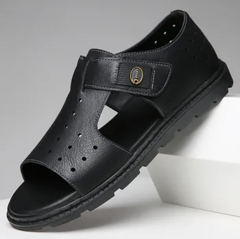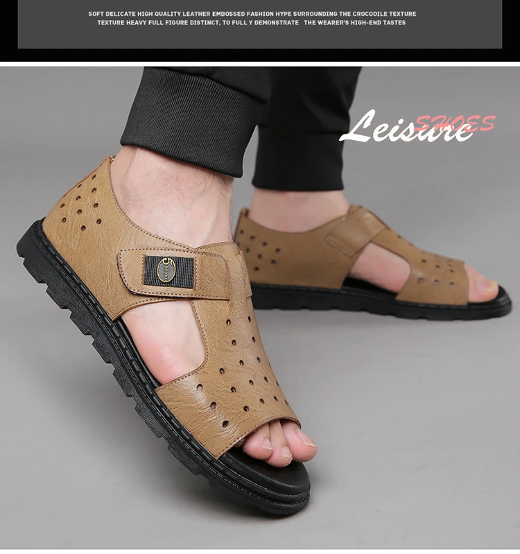 Genuine Leather Men Roman Sandals Luxury Open Toe Flat Casual Shoes Male Comfor Soft Beach Shoes Fashion designer Men sandalias