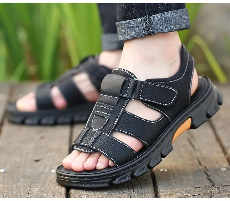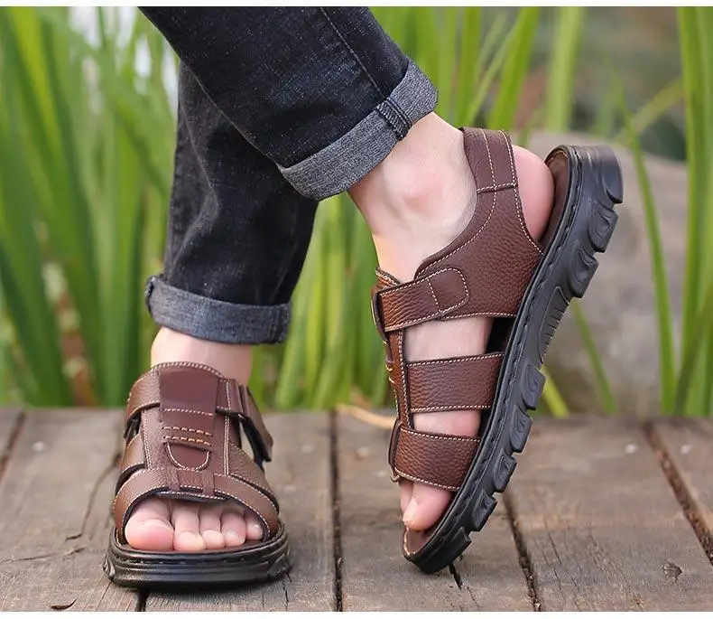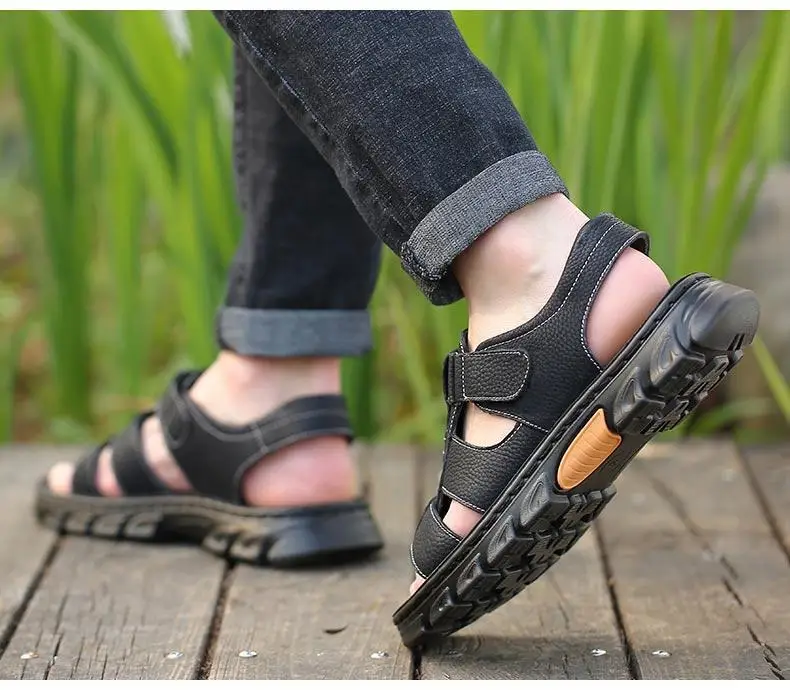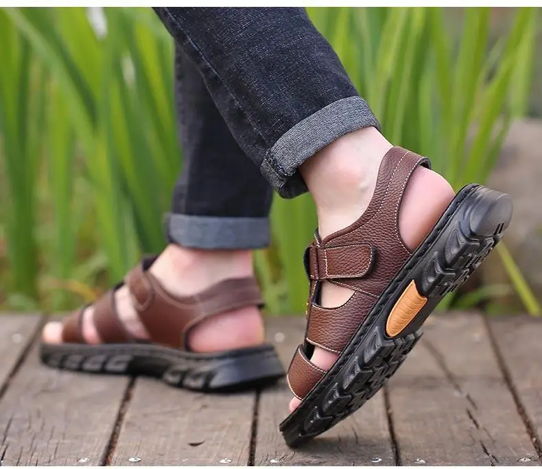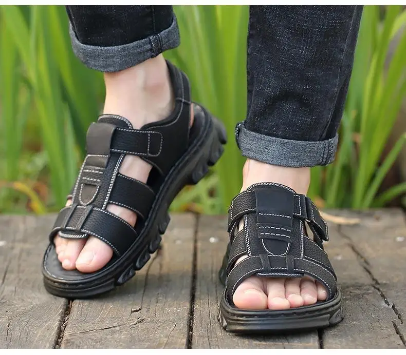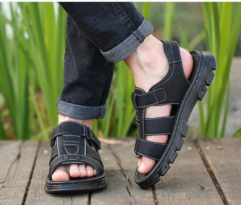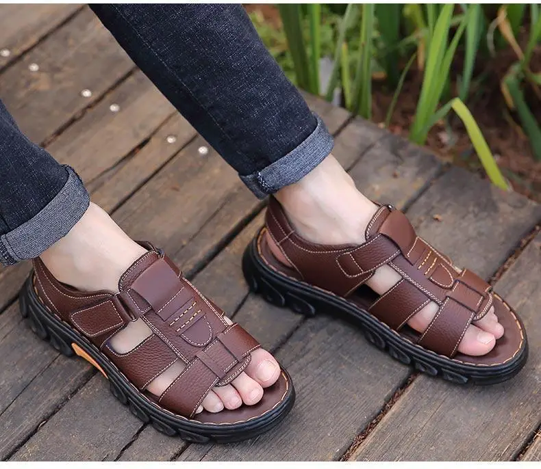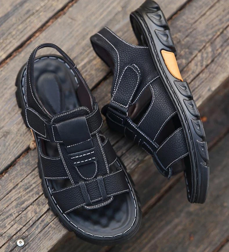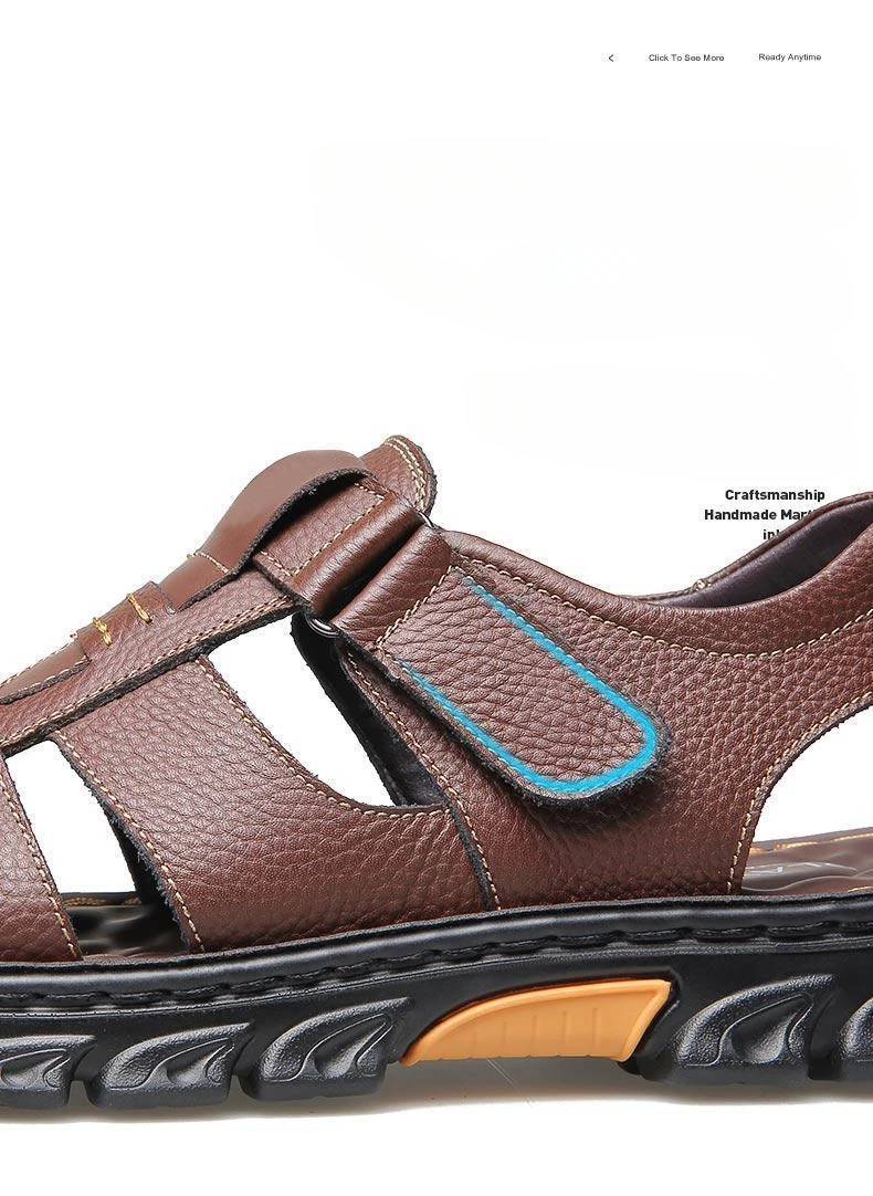 Hot Sale Men’s Sandals High-Quality Cow Leather Shoes for Men Outdoor Beach Dual-purpose Slippers Non-slip Thick-soled Dad Shoes