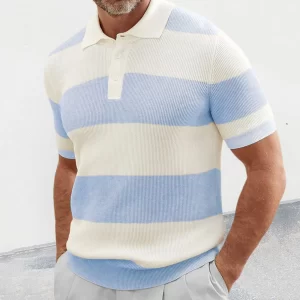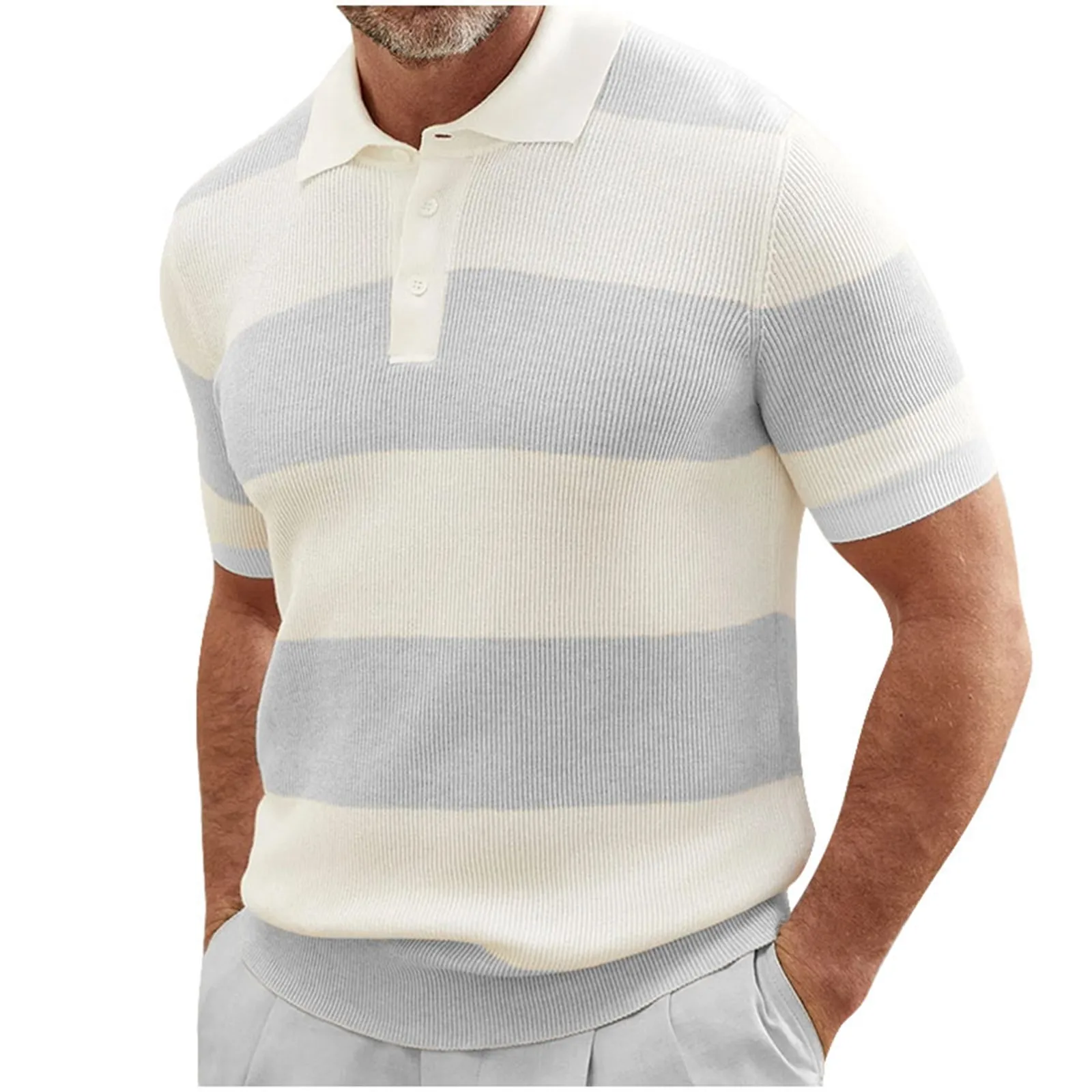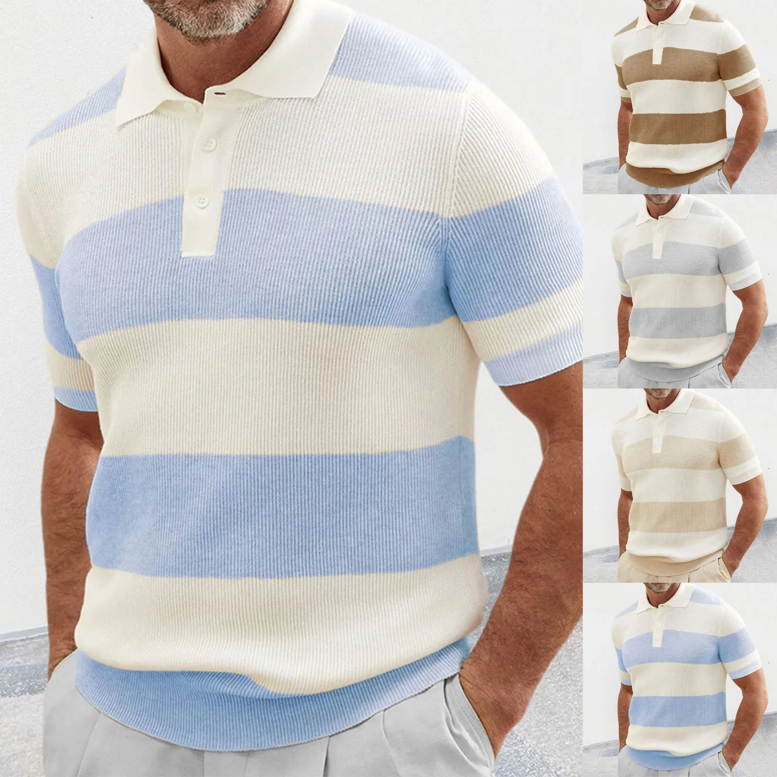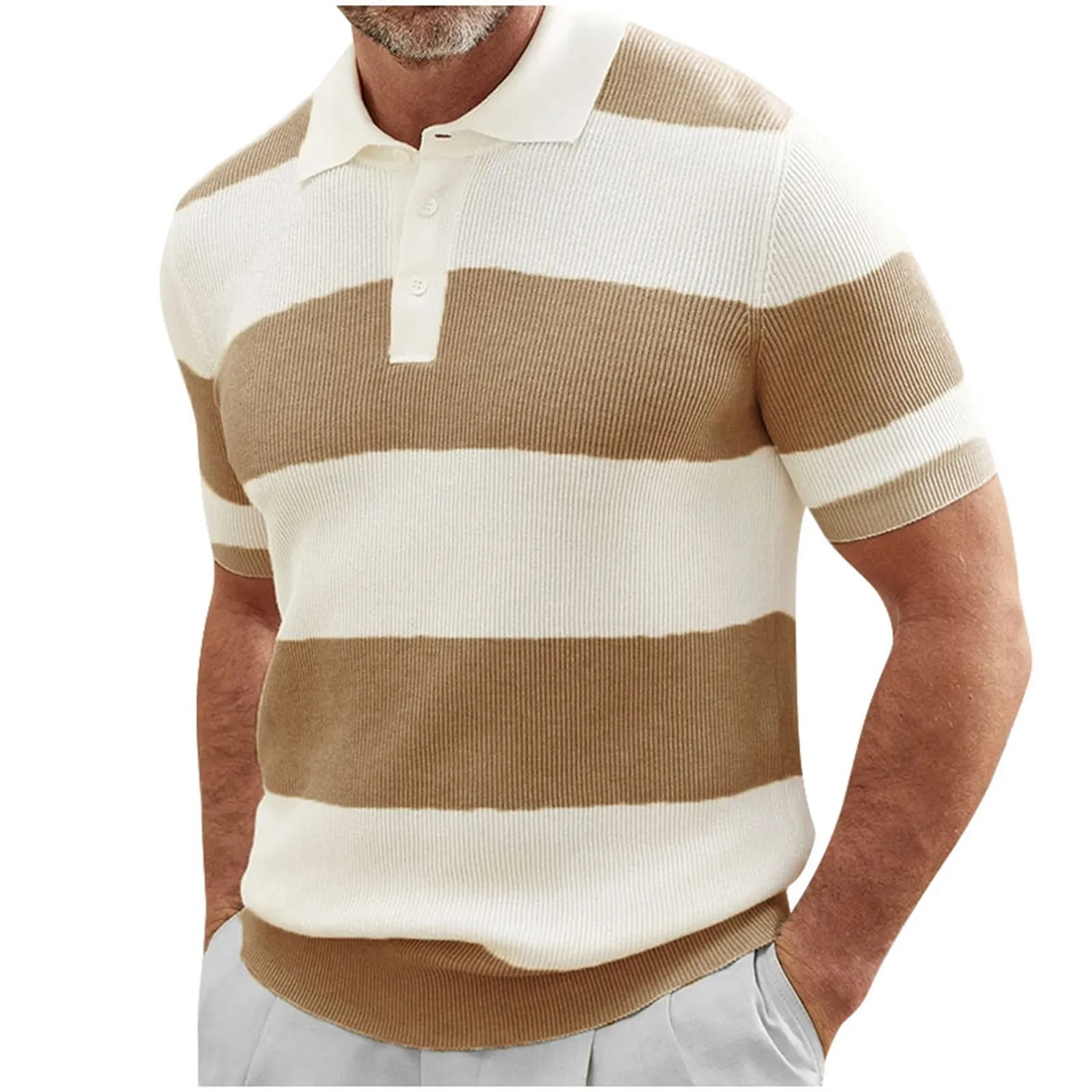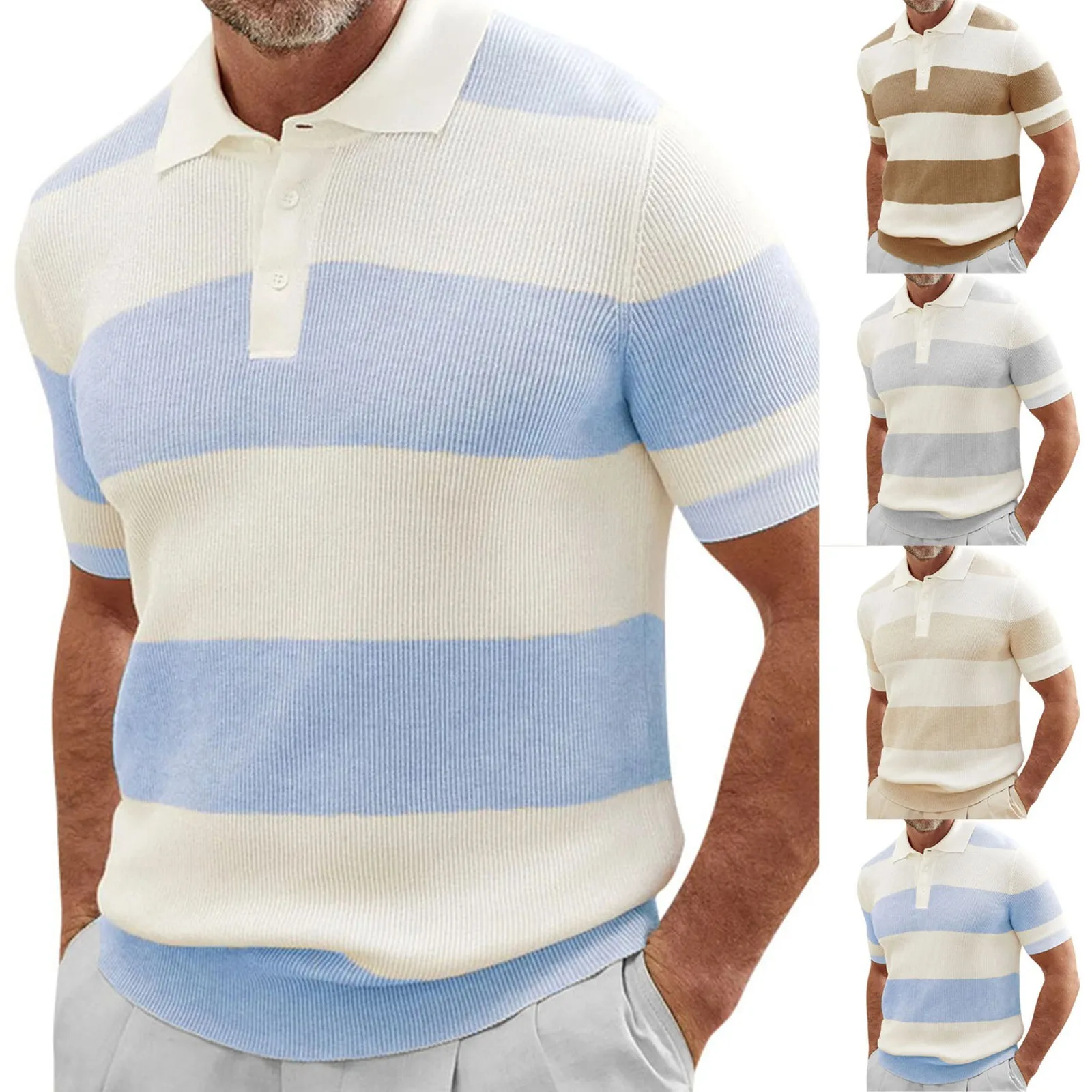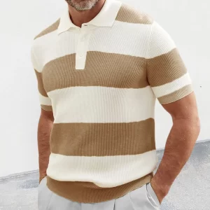 Men’s Color Matching Short Sleeve Lapel Sweater Muscle Men’s Short Sleeve