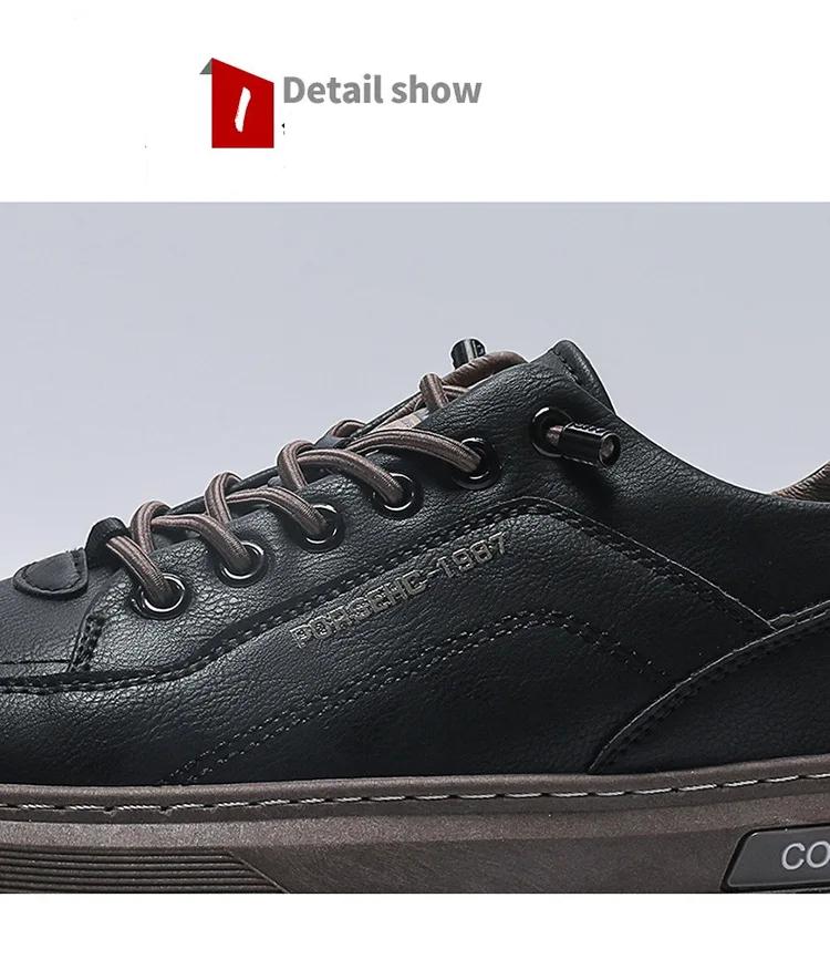 Mens Leather Slip on Skate Flats Non Slip Casuals Shoes