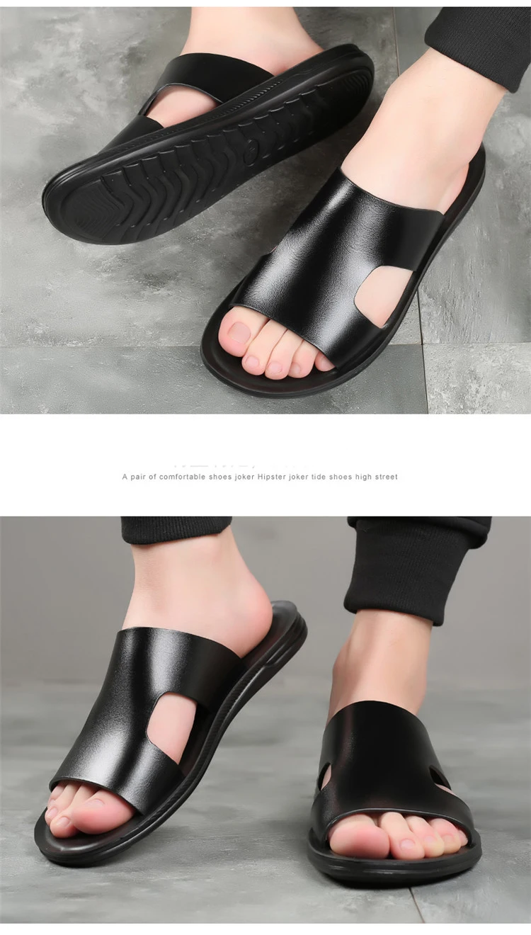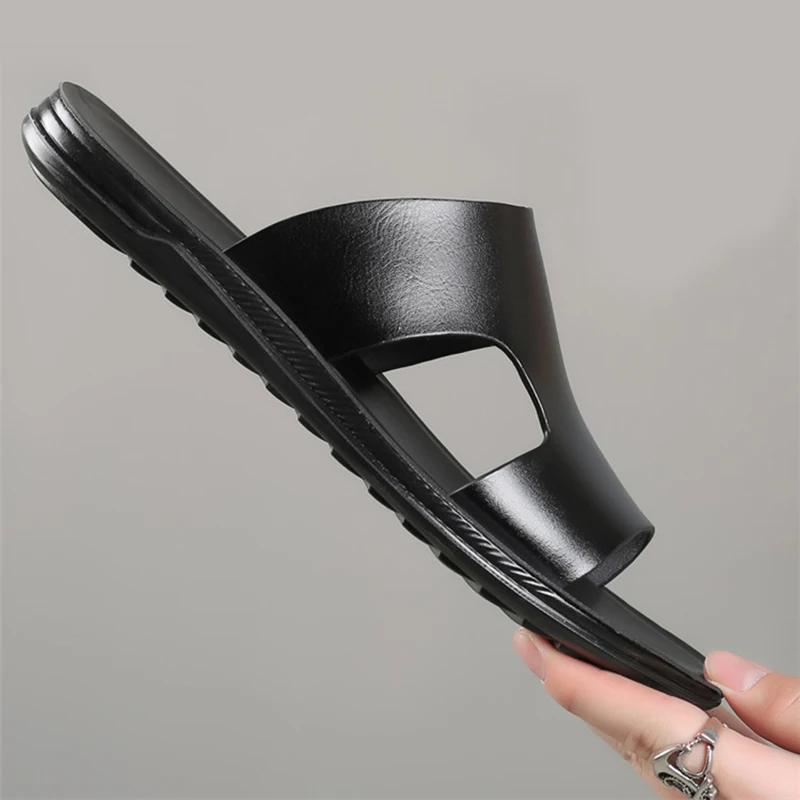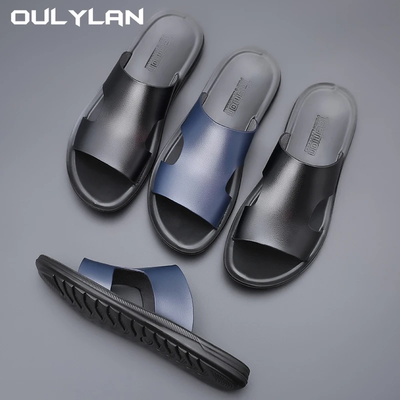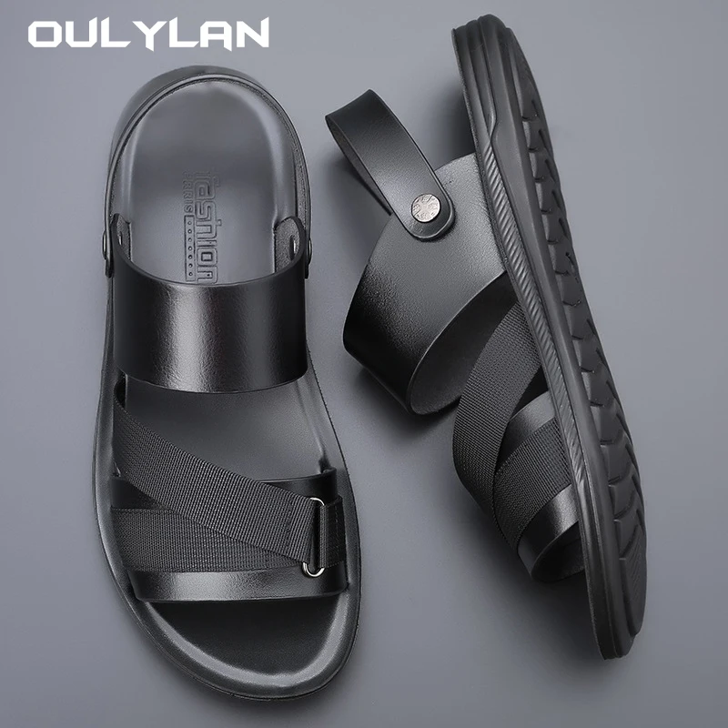 Oulylan 2024 Men's Summer Leisure Beach Sandals Outdoor Slide Walking Comfortable Lightweight Leather Fashion Design