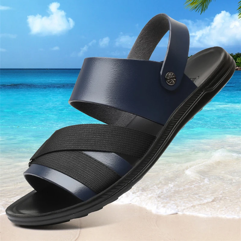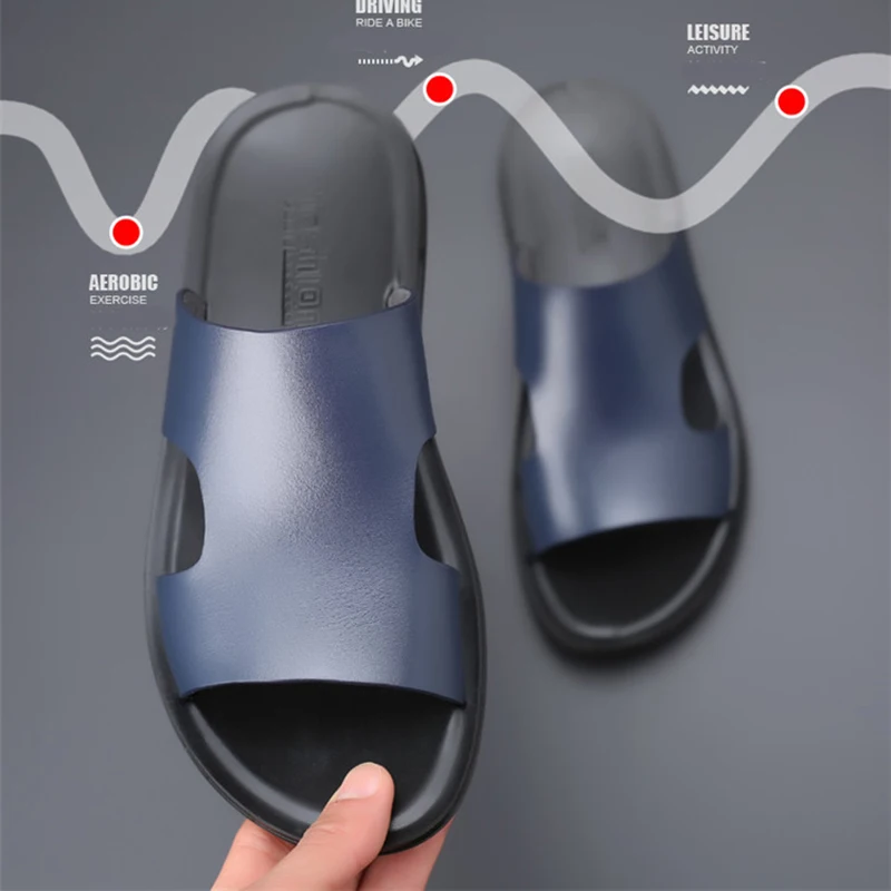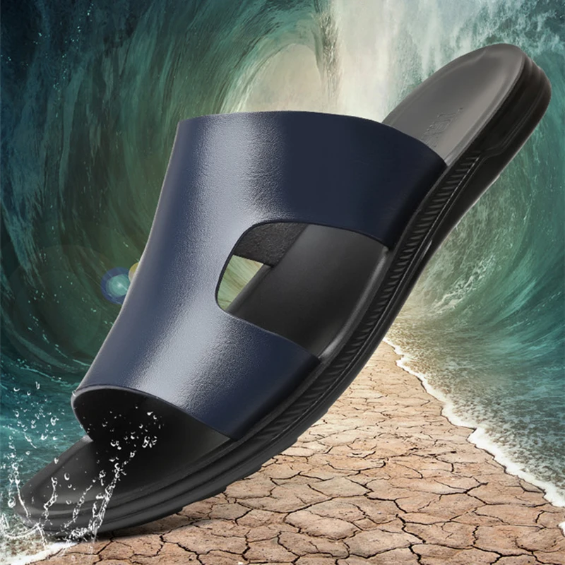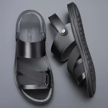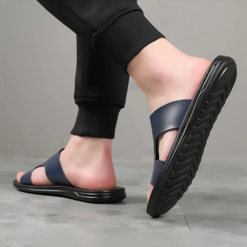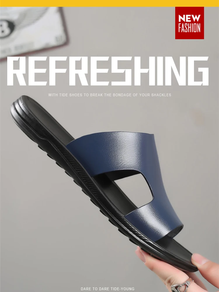 Oulylan 2024 Men's Summer Leisure Beach Sandals Outdoor Slide Walking Comfortable Lightweight Leather Fashion Design