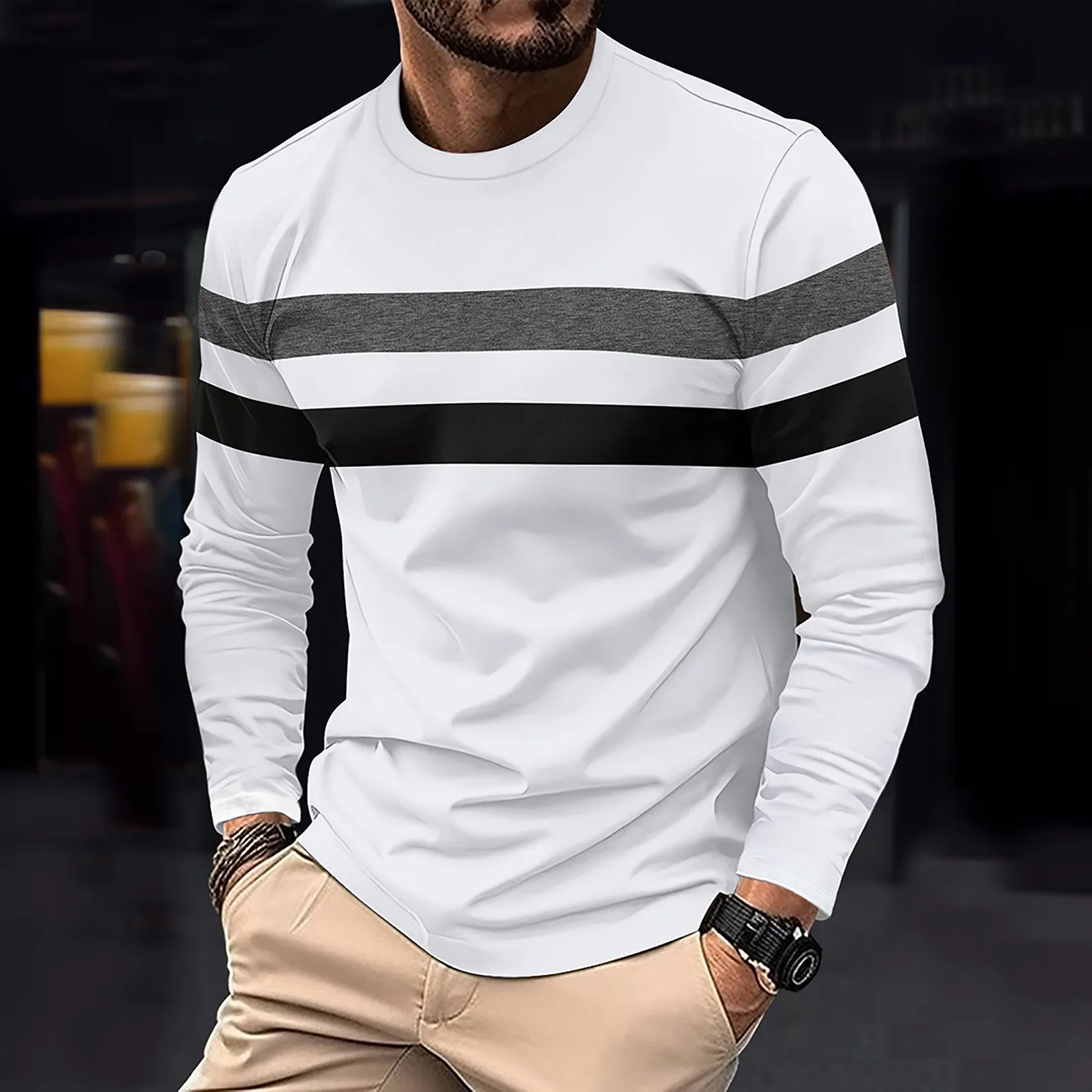 Men Fashion Casual And Comfortable T Shirt Color Matching Shoulder Sleeve Long Sleeved Shirt