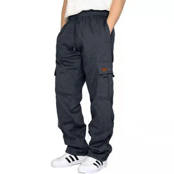 Mens Loose Cargo Pants Casual Drawstring Elastic Waist Wide Leg Athletic Sweatpants Outdoor Trousers